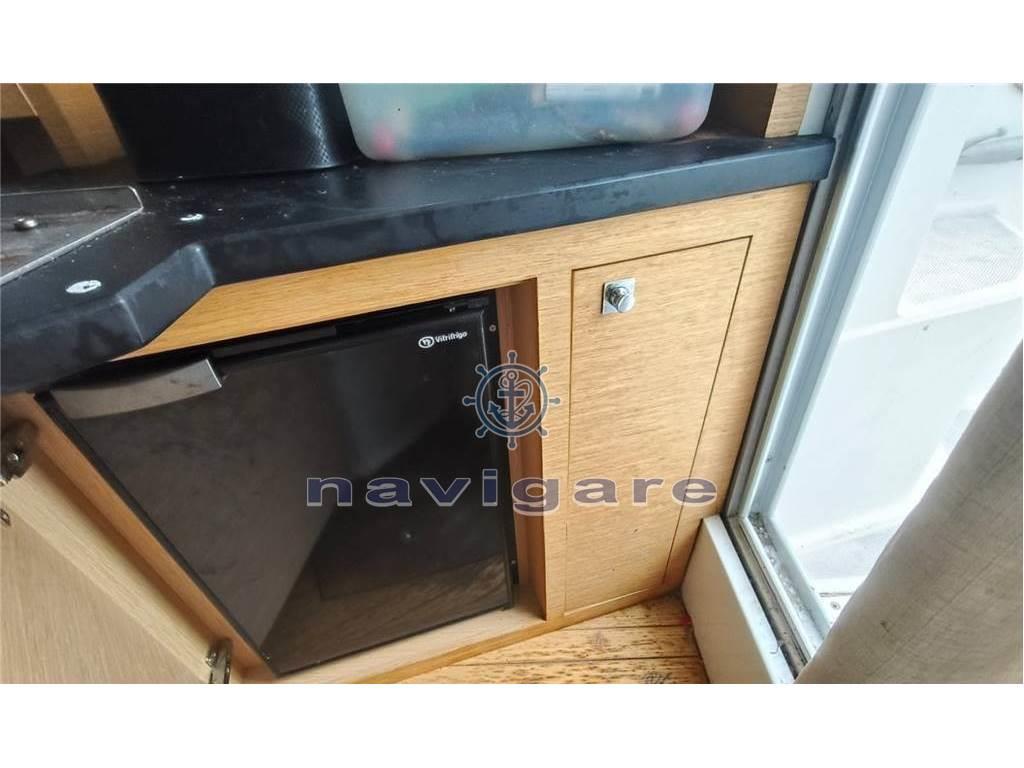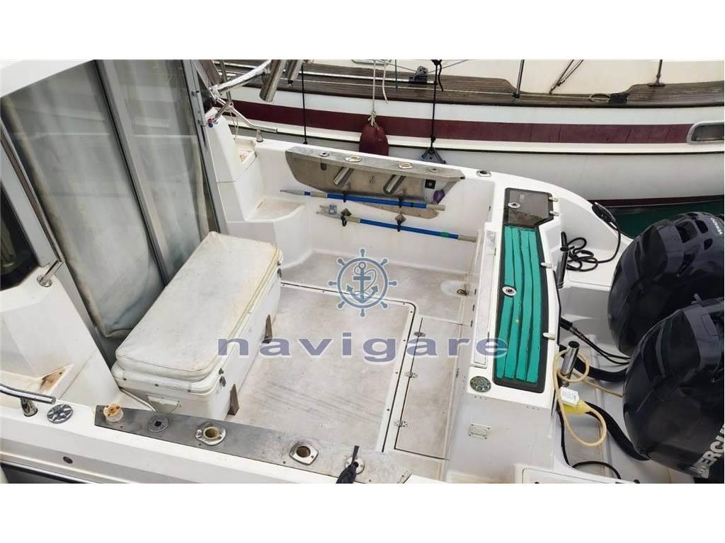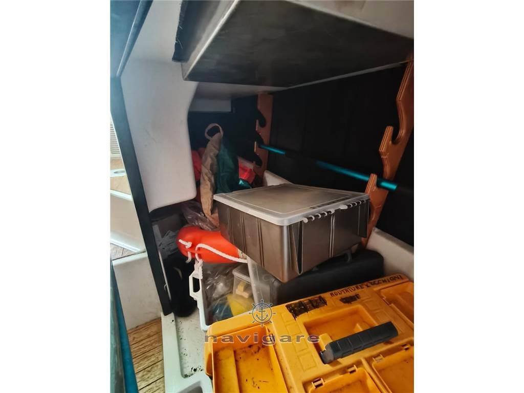 Cuscineria completa, Frigorifero interno, Portacanne, Prese interne 12v, Prese interne 220v, Radio AM/FM, Stereo, Vasca del vivo, WC marino elettrico