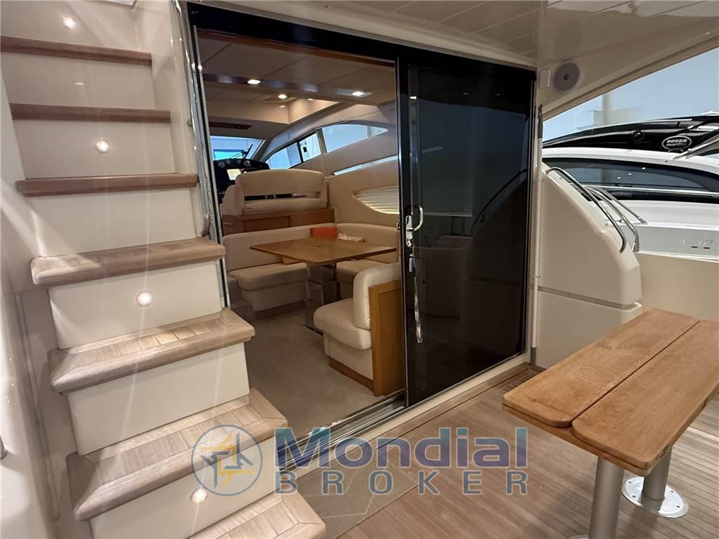 Allarme motore, Allarme sentina, Ancora, Angolo barra, Autoclave, Autogonfiabile, Batterie, Bussola, Camminamenti laterali in teak, Caricabatterie, Comando motori elettronico, Computer di bordo, Contamiglia, Doccia esterna, Ecoscandaglio, Elica di prua - bow thruster, Flap elettrici, GPS, Impianto antincendio, Indicatori Flaps, Piattaforma, Pilota automatico, Pompa di sentina automatica, Pompa di sentina manuale, Pozzetto Teak, Presa 220V banchina, Raddrizzatore, Radio VHF, Salpa Ancore Elettrico, Scaletta da bagno, Tromba