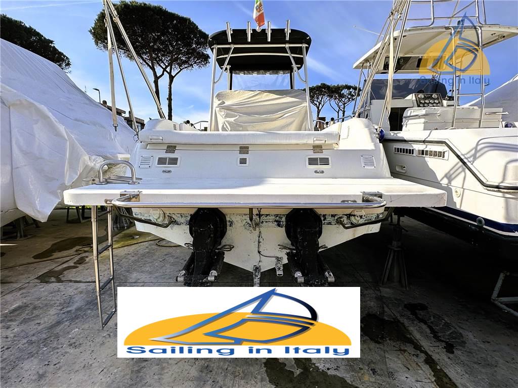 T-Top in acciaio inox con doppia copertura (nera e bianca) ; Salpa ancora elettrico (comando in consolle) ; Ancora + catena ; Piattaforma di poppa con prolungamento in acciaio per tender