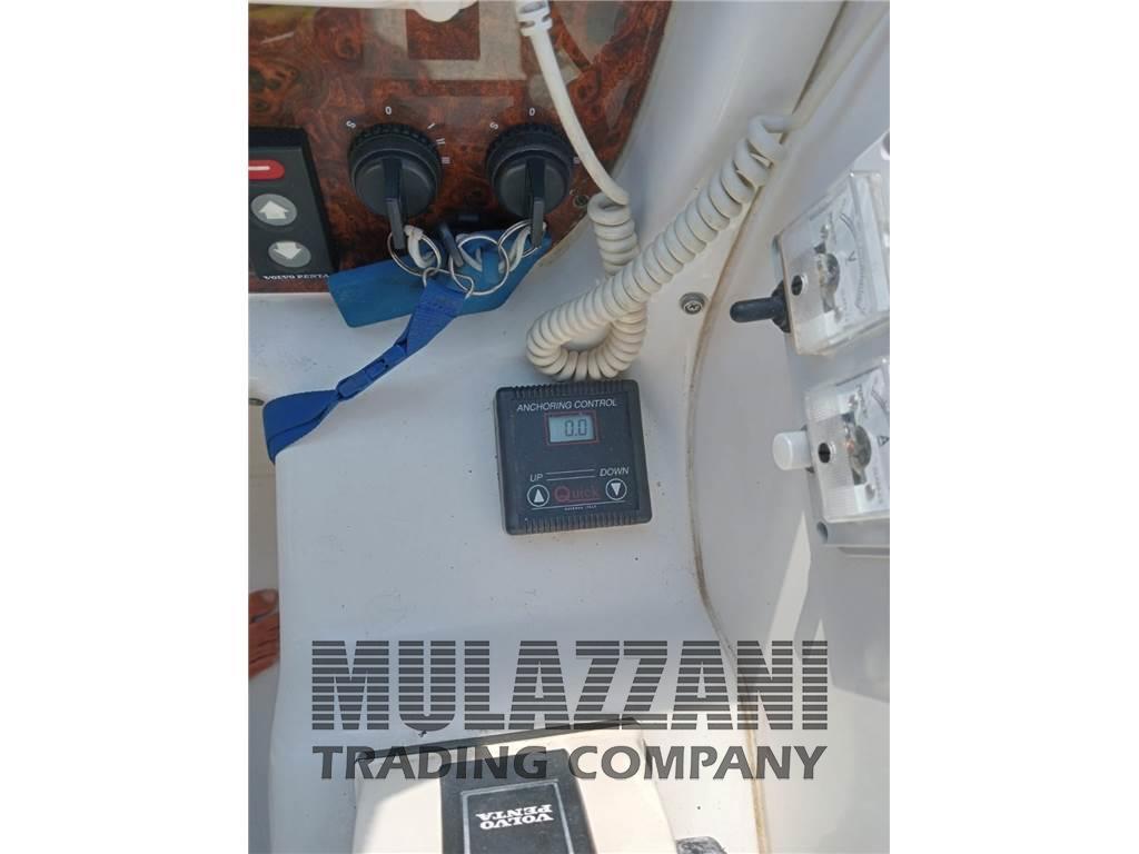 Allarme motore, Ancora, Angolo barra, Autoclave, Autogonfiabile, 3 Batterie (2025 nuove 2 batterie motori), Bussola, Caricabatterie, Contametri catena, Contamiglia, Display, Doccia esterna, Ecoscandaglio, Elica di prua - bow thruster, Flap elettrici, GPS, Gruette per tender (telescopiche), Indicatori Flaps, Lavandino nel Pozzetto, Luci di cortesia, Passerella (pieghevole ad incastro (nuova )), Piattaforma, Pilota automatico, Plotter, Plotter con antenna GPS, Pompa di sentina automatica, Pompa di sentina manuale, Porta ingresso, Presa 220V banchina, Raddrizzatore, Radio VHF, Rollbar, Salpa Ancore Elettrico, Scaletta da bagno, Tavolo pozzetto, Tavolo Salone Abbattibile, Tromba