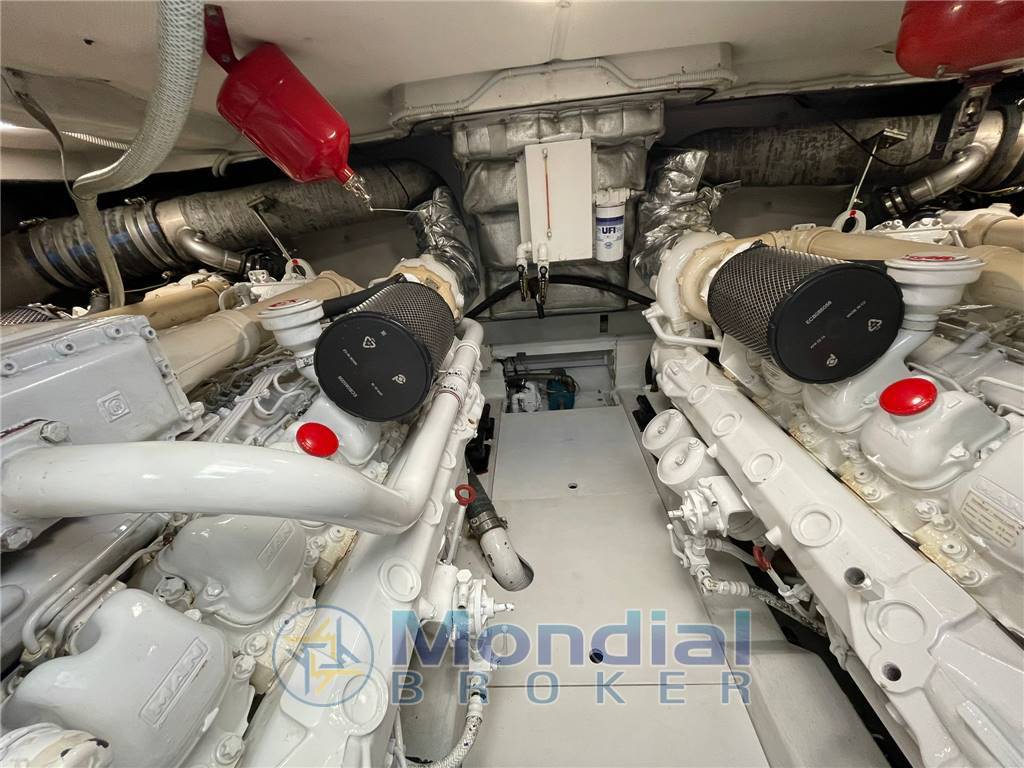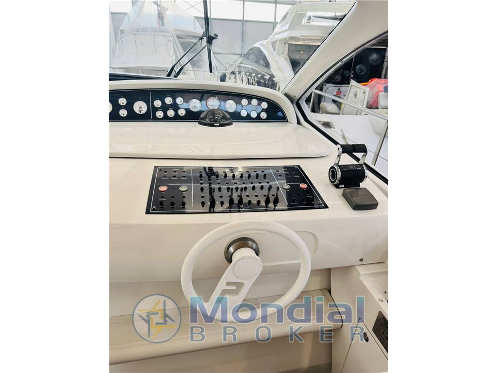 Navigazione: autopilota, ecoscandaglio/log, radio VHF, radar, GPS/plotter Raymarine, indicatori angolo di barra; strumenti motore completi, elica di prua, flap idraulici con indicatori, contagiri, indicatori trim Arneson