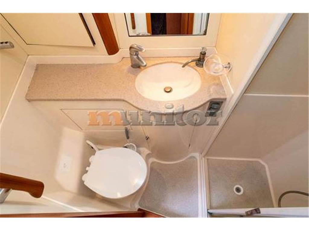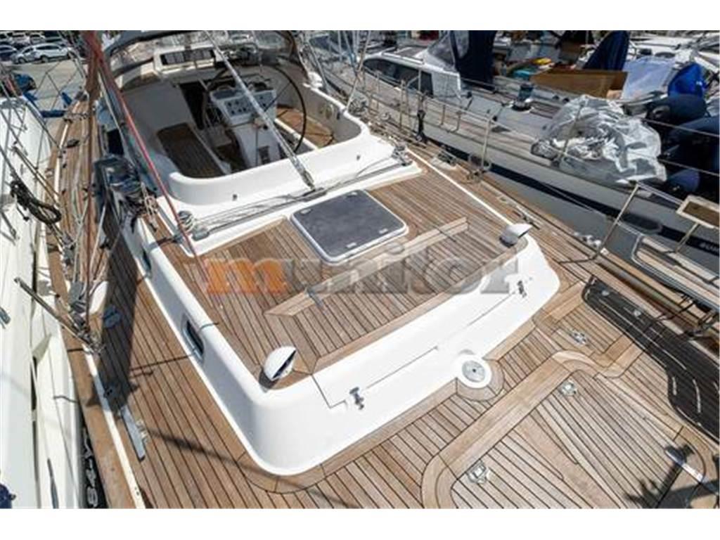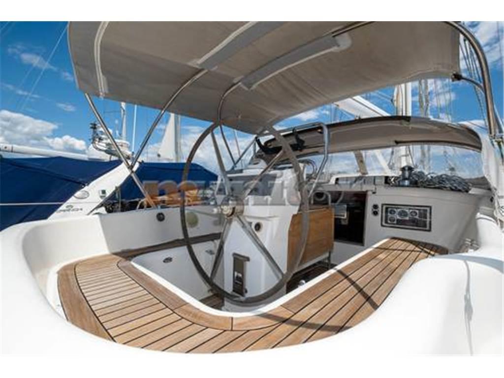 VHF, Ecoscandaglio, Riscaldamento, Pilota automatico, Radar, Doccia in pozzetto, Verricello elettrico, Impianto acqua calda, Serbatoio acque grigie, Plotter GPS, Anemometro, Sprayhood, Bimini top, Caricabatterie, Elica di prua, Impianto audio, Parabordi, Forno a microonde, Bussola, Piattaforma da bagno, Scaletta da bagno, Divani in pelle, Desalinizzatore, Generatore, Lavatrice, Gruette, WC elettrico, Frigorifero aggiuntivo, Frigorifero, Fornello, Teak in pozzetto, Forno, Verricello elettrico