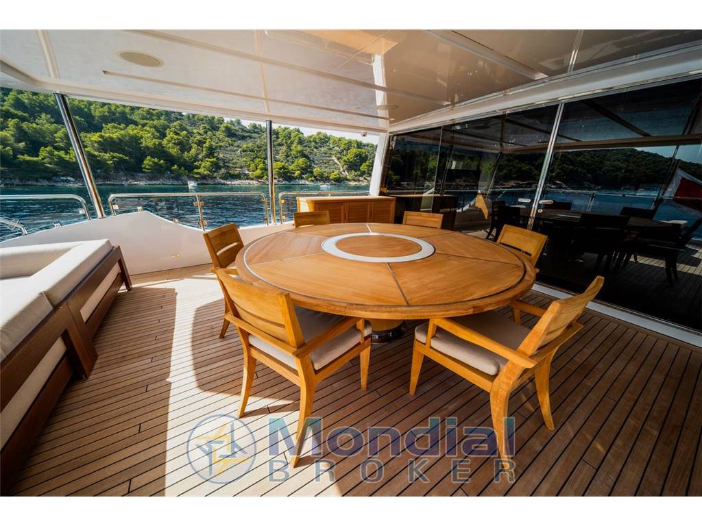 Panoramic windows on the main deck fill the saloon with natural light, while gloss amber-colored wood surfaces, combined with onyx, set off light-colored seating furniture, and create an amazing combination of restrained luxury and tranquil homeliness.