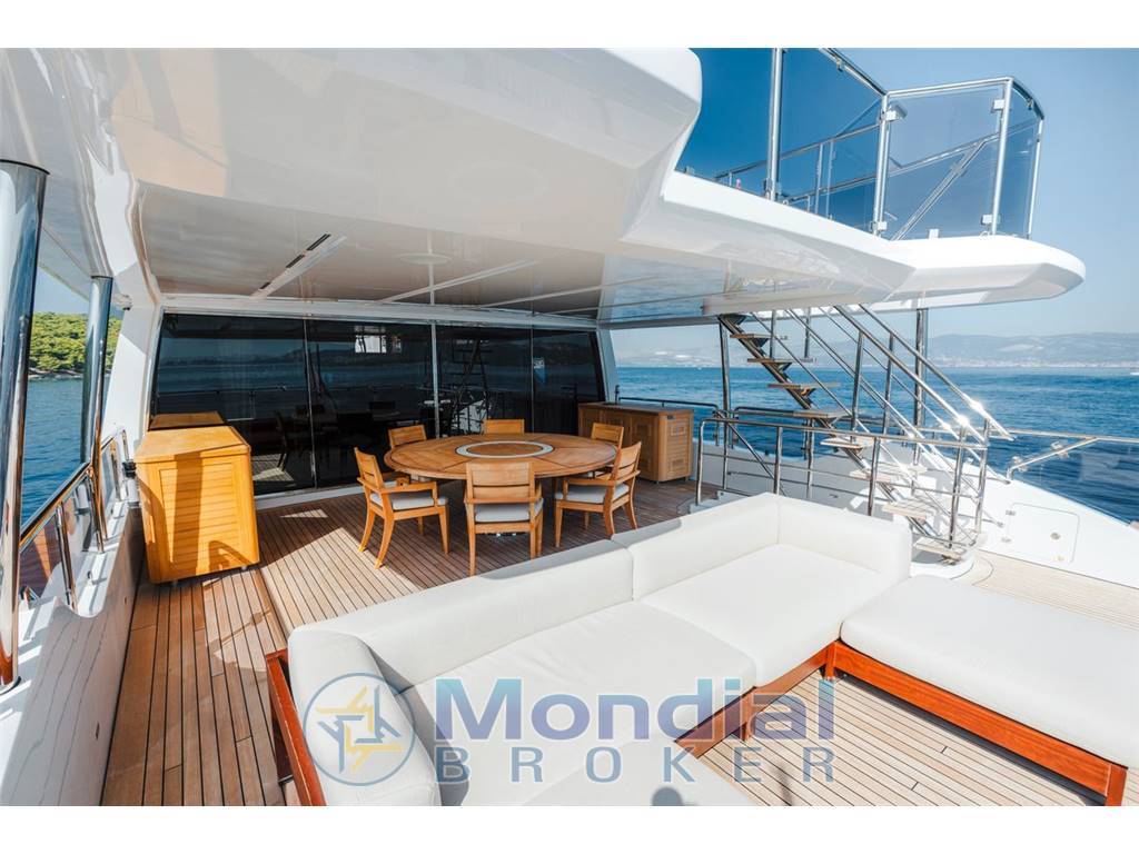 The entire bow of the Afina’s main deck is dedicated to the Owner's individually designed suite, enlarged compared to other Benetti 108 yachts. Here, in addition to spacious staterooms and bathrooms, there is an isolated office, a full-sized wardrobe and a personal laundry. The upper deck offers a relaxing lounge area, and a bar.