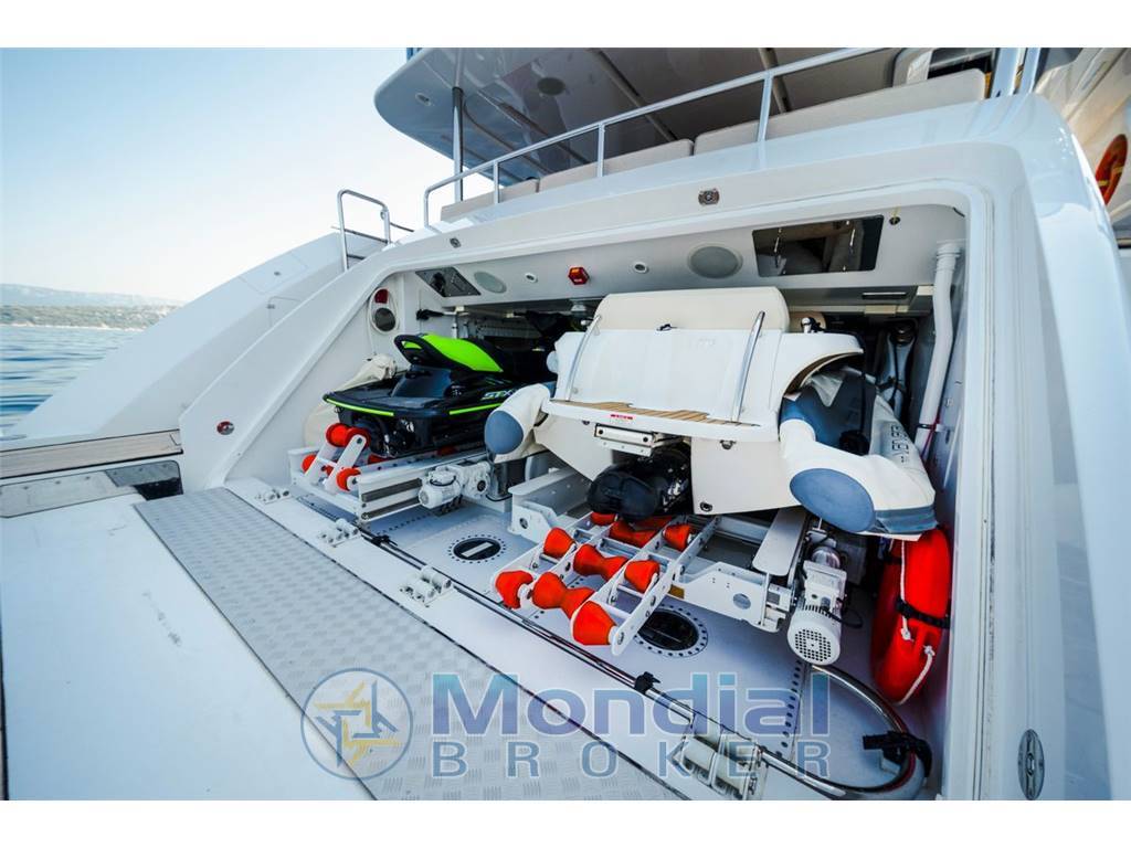 Afina is equipped with an improved navigation system, an integrated audio-video equipment, light and climate control system powered by Crestron. The garage houses a Williams 445DJ tender, a Kawasaki jet ski, two seabobs, and a Yamaha stand-up jet ski at the bow. Afina is powered by 2 x MAN V8 1000 hp.