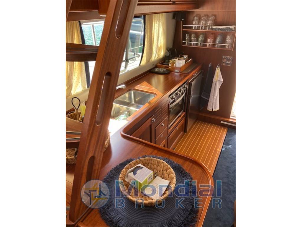 Interni curati come pochi con sulla sinistra un comodo divano per otto persone e un tavolo abbattibile che permette di trasformare il tutto in un comodo matrimoniale, a dritta un mobile cucina completo di pensili e molti stipetti con cucina attrezzata con piastre infrarosso forno frigo ghiacciaia, a dritta avanti una comoda e attrezzata postazione di guida con uscita diretta su passavanti e adritta contrapposto un comodo divanetto con relativa uscita su ponte esterno,sul ponte inferiore un piccolo corridoio con a dritta cabina ospiti con due letti in piano e armadietti oltre wc privato con doccia, all estrema prua armatoriale con armadi e wc privato con doccia separata.