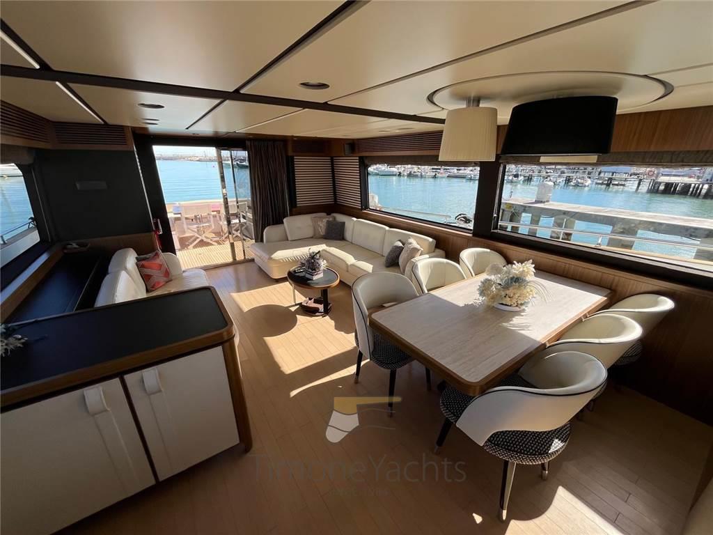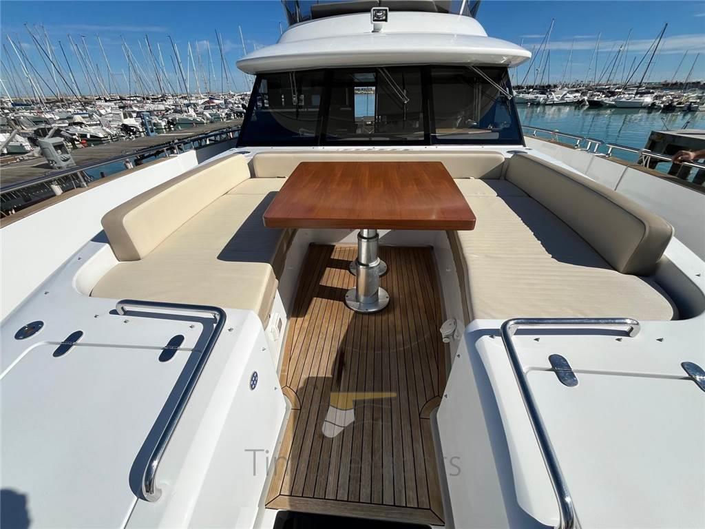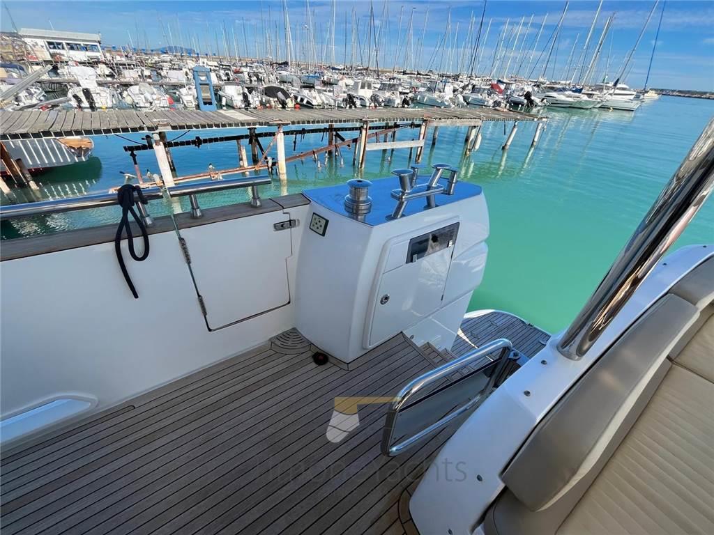 Allarme motore, Autoclave, Camminamenti laterali in teak, Comando motori elettronico, Contametri catena, Ecoscandaglio, Elica di poppa - stern thruster, Elica di prua - bow thruster, GPS, Joystick, Pilota automatico, Plotter con antenna GPS, Ponte in teak, Porta laterale, Pozzetto Teak, Radar, Radio VHF, Sedile Copilota, 2 Winch tonneggio di poppa, Winch tonneggio di prua