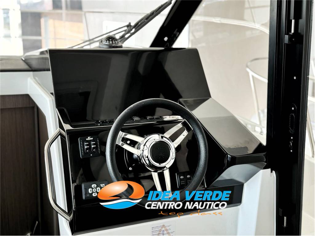 The Merry Fisher 895's instrumentation is designed to ensure safe, intuitive and comfortable navigation. The dashboard can be equipped with a high-definition multifunction GPS chartplotter, which can be integrated with an echo sounder, electronic compass, and sensors for navigation and depth data. For communications, the installation of nautical VHF with DSC, essential for safety at sea, is planned. The engine instruments offer constant monitoring of operating parameters, while the ergonomic layout of the console ensures protected and easy driving in any sea situation.