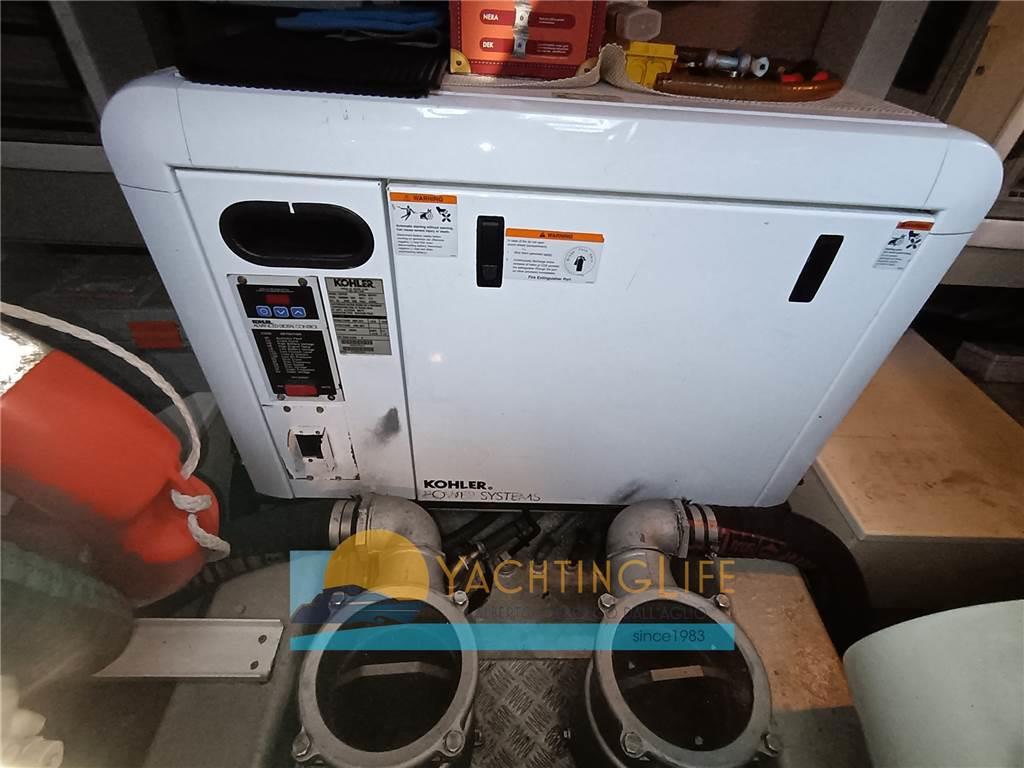 Allarme motore, Allarme sentina, Ancora, Angolo barra, Antenna radar, Autoclave, Autogonfiabile, Batterie, Bussola, Caricabatterie, Contamiglia, Display (Multifunzione), Doccia esterna, Doppia timoneria, Ecoscandaglio, Elica di poppa - stern thruster, Elica di prua - bow thruster, Faro orientabile, Flap idraulici, GPS, Impianto antincendio, Interfaccia, Luci subacquee, Motore ausiliario, Passerella (Idraulica), Piattaforma (Idraulica), Pilota automatico, Plotter con antenna GPS, Pompa di sentina automatica, Pompa di sentina elettrica, Pompa di sentina manuale, Porta ingresso, Porta laterale, Pozzetto Teak, Presa 220V banchina (Con avvolgitore), Presa acqua banchina, Radar, Radio VHF, Rollbar, Salpa Ancore Elettrico, Scaletta da bagno, Tromba, 2 Winch tonneggio di poppa
