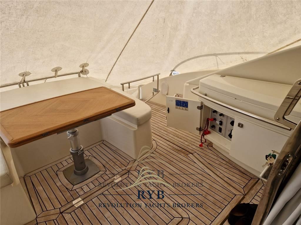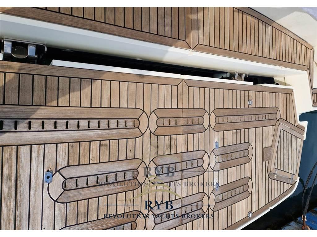 Allarme motore, Ancora, Colorazione speciale (BLUE NAVY), Doccia esterna, Elica di prua - bow thruster, Faro orientabile, 2 Flap idraulici, Hard top, Impianto antincendio, Lavandino nel Pozzetto, Luci di cortesia, Passerella (IDRAULICA A SCOMPARSA), Piattaforma (TENDERLIFT), Pompa di sentina automatica, Pompa di sentina manuale, Porta ingresso, Pozzetto Teak, Presa 220V banchina, Salpa Ancore Elettrico, Scaletta da bagno, Tavolo pozzetto.