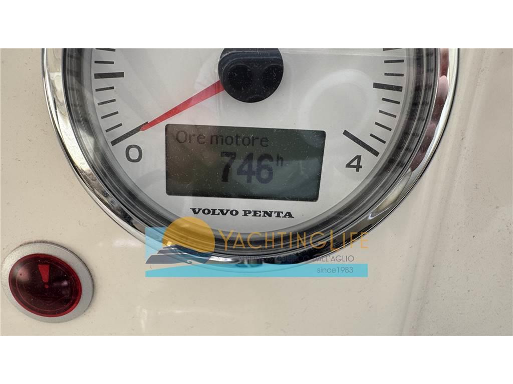 Allarme motore, Ancora, Angolo barra, Auto Dynamic Trim Interceptor, Autoclave, Autogonfiabile, Batterie, Bussola, Caricabatterie, Contamiglia, Doccia esterna, Doppia timoneria, Ecoscandaglio, Elica di prua - bow thruster, Flap idraulici, GPS, Impianto antincendio, Indicatori Flaps, Joystick, Luci di cortesia, Luci subacquee, Pannelli Solari (per ricarica batterie 20Amp-400w), Passerella (idraulica), Piattaforma (idraulica), Pilota automatico, Pompa di sentina automatica, Pompa di sentina elettrica, Pompa di sentina manuale, Porta ingresso, Pozzetto Teak, Presa 220V banchina, Radio VHF, Salpa Ancore Elettrico, Scaletta da bagno, Tavolo pozzetto, Tromba