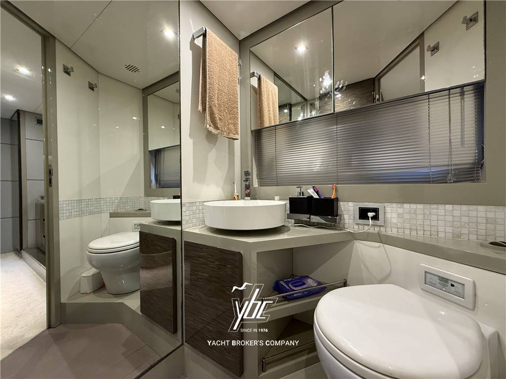 Zona notte composta da cabina VIP a prua con armadi e bagno con box doccia separato, cabina ospiti a due letti a castello, cabina armatore a centro barca a tutto baglio con armadi e bagno dedicato completo di box doccia separato