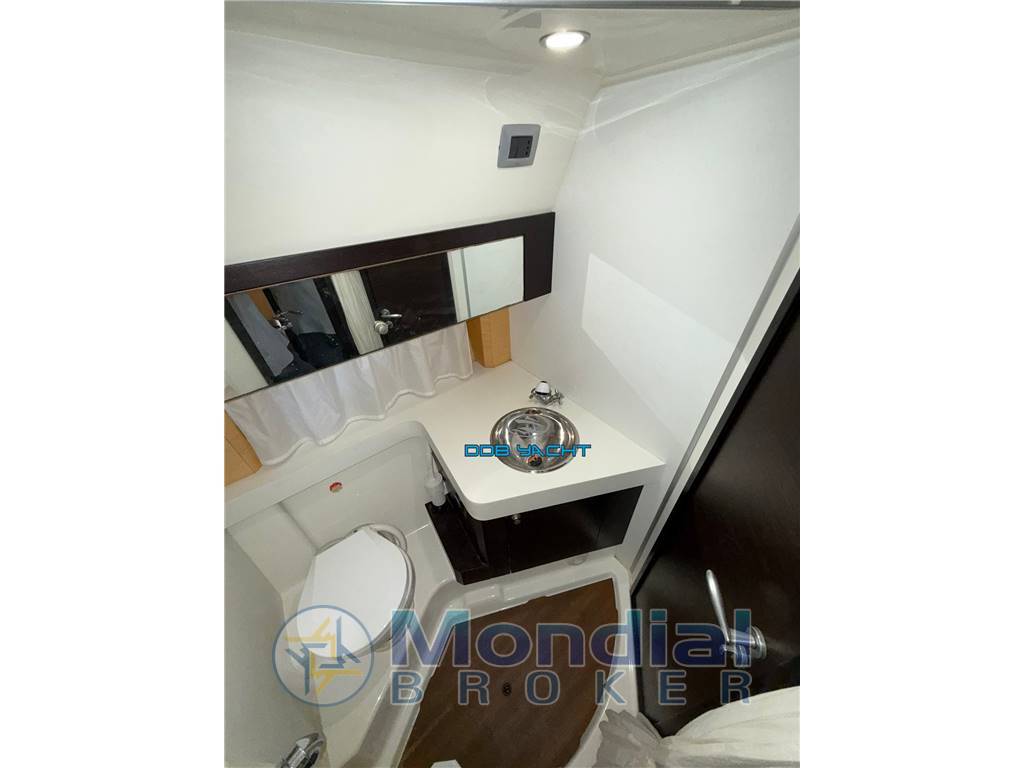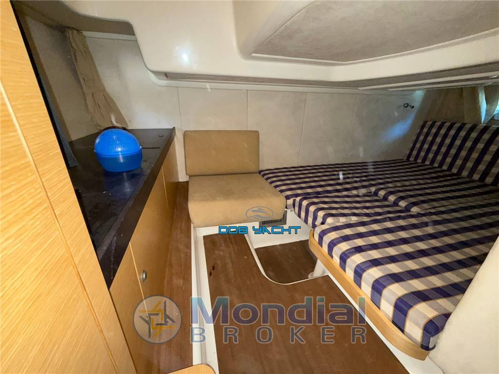 2 CABINE, 1 BAGNO: cabina armatoriale a prua, locale wc separato, dinette con tavolo convertibile, cucina lato sx con lavabo, frigo ISOTHERM, forno a microonde NARDI, piano cottura a gas con n* 2 fuochi, cabina di poppa separata con letti in piano e con tv LG; ampio pozzetto di poppa con divano di navigazione e tavolo convertibile in prendisole con cuscino, mobile living con lavabo, frigo a cassetto in acciaio ISOTHERM e fornello a gas CAN, seduta pilota e co pilota, plancia di comando, ampio prendisole di prua con schienali reclinabili.