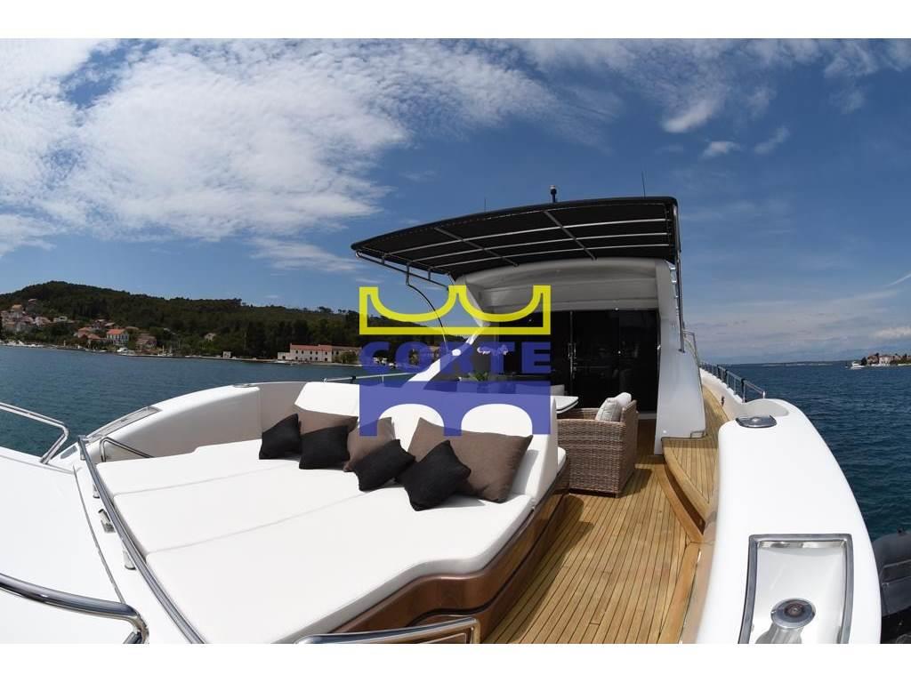 Allarme fumo/gas, Allarme motore, Allarme sentina, Ancora, Camminamenti laterali in teak, Doccia esterna, Elica di poppa - stern thruster, Elica di prua - bow thruster, Garage per tender, Luci di cortesia, Passerella, Piattaforma (di poppa), Pompa di sentina automatica, Pompa di sentina elettrica, Pompa di sentina manuale, Ponte in teak, Pozzetto Teak, Presa 220V banchina, Presa acqua banchina, Salpa Ancore Elettrico, Tavolo pozzetto.