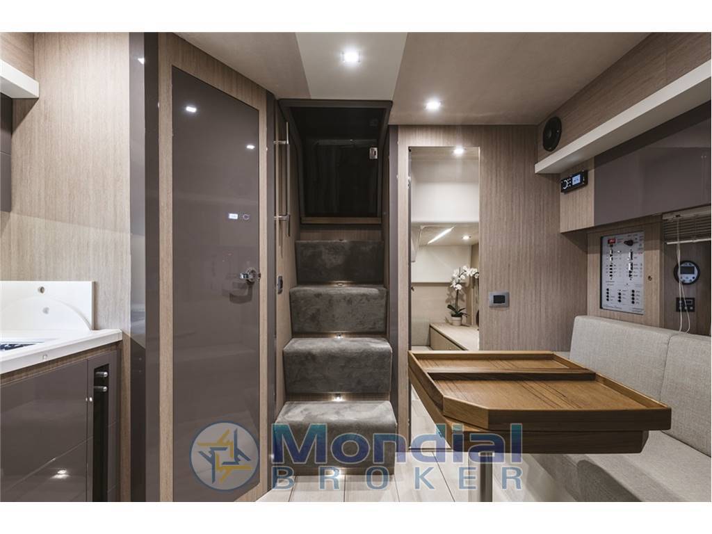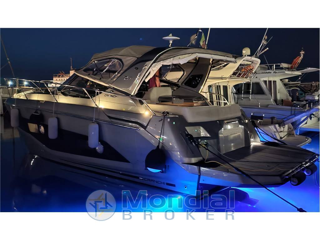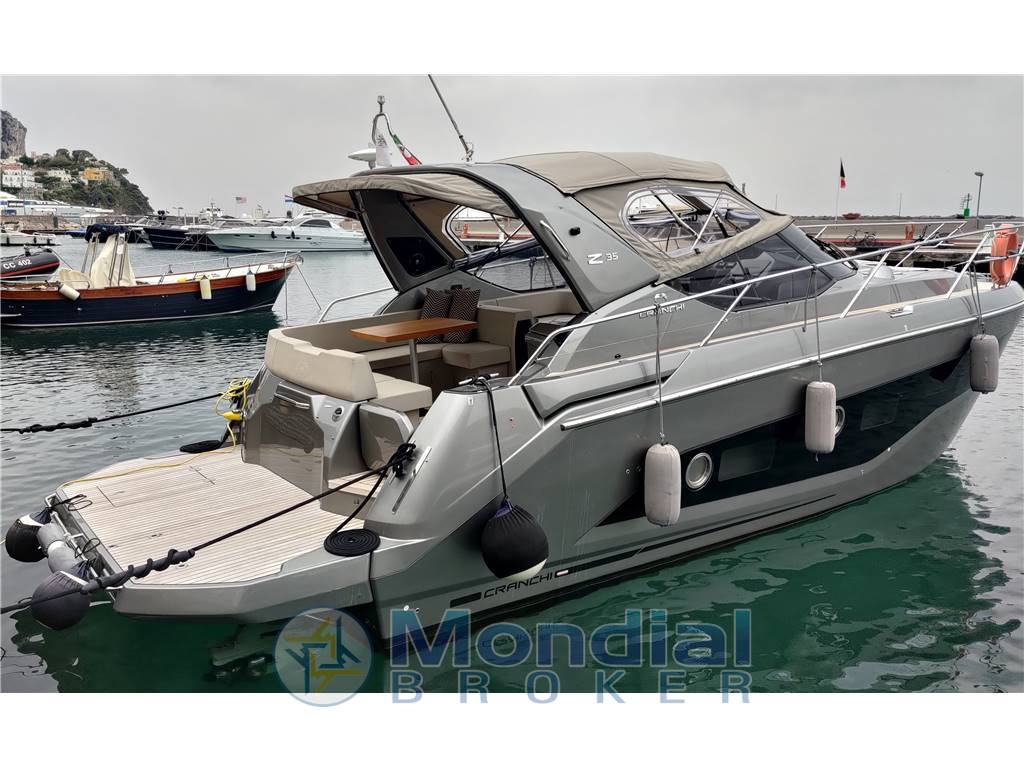 VENDITA BARCA A MOTORE CRANCHI Z35 GRIGIO COSMO ANNO 2020 CON 2XVOLVO PENTA D4-270 HP-DPI, 510 H DI NAVIG. CIRCA.Joystick, elica di prua, cruise control, trip computer, power trim assistance, interceptor, completa di bimini top e chiusure totali, tenda parasole poppa, tenda parasole prua, ancora maggiorata 21 kg acciaio Delta ultramarine, telecomando verricello con contametri integrato, serbatoio carburante unico acciaio 600 lt, teak massello su tutte le superfici esterne, aria condizionata 16.000 BTU - pompa di calore, generatore Paguro 3,5 kw, doppia cucina (gas dinette + elettrico pozzetto), doppio frigo (130 lt dinette + 90 lt pozzetto), microonde Samsung, TV Samsung dinette - predisposizione utilizzo cabine ed esterno, doppio stereo Fusion collegato al Garmin (pozzetto - dinette), 6 casse (2 dinette - 2 pozzetto - 2 prendisole prua) - subwoofer, GPS Chartplotter Garmin 12", pilota automatico Garmin, Multi strumentazione DTS Garmin (temperatura - profondità - velocità), VHF/DSC Garmin, doppia doccetta acqua fredda/calda (poppa - prua), impianto luci LED esterne supplementari, luci LED poppa, serbatoio acque nere, impianto microaspirazione acqua (presa diretta banchina), serbatoio acqua 200 lt, tavolo pozzetto teak abbassabile a gas (prendisole supplementare), interni luxury con finitura laccato lucido, tavolo dinette teak abbassabile (letto supplementare 2 piazze), bagno con doccia separata, tende oscuranti su tutte le superfici vetrate, tappezzeria esterna silvertex, commissioni a parte