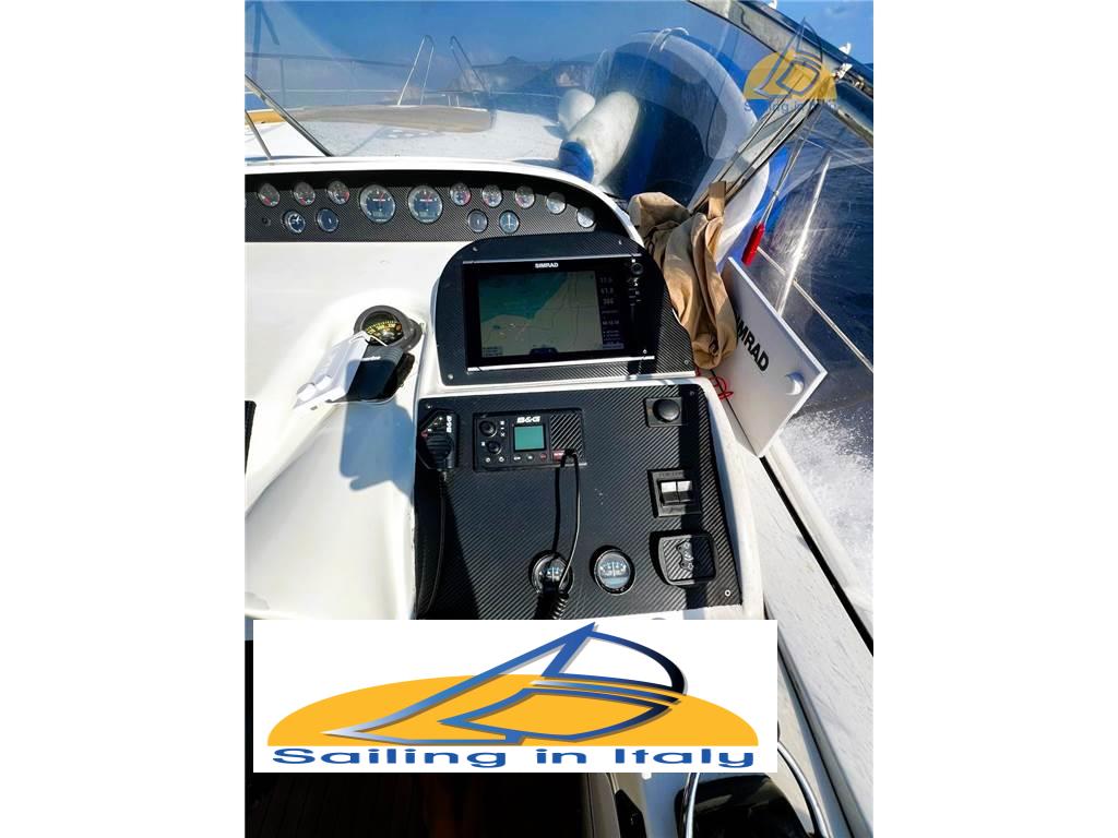 Angolo barra, Bussola, Comando motori elettronico, Contamiglia, Display (Simrad (2025)), Ecoscandaglio, GPS, Log, Luci di navigazione, Mappe e guide, Monitor dei consumi, Pilota automatico (Raymarine), Plotter, Plotter con antenna GPS, Radio VHF, Sedile Copilota.