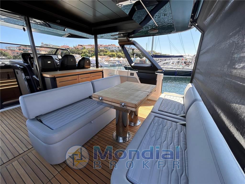 Allarme motore, Ancora (Ancora digitale Volvo Penta DPS + ASSISTED DOCKING), Autoclave, Bussola, Caricabatterie, Contamiglia, Doccia esterna, DSC vhf, Elica di prua - bow thruster (con estintore automatico), Faro orientabile, Flap idraulici, GPS, Joystick, Passerella (IDRAULICA A 3 STADI L m 3), Piattaforma (a idraulica Sali/scendi 28 cm sotto acqua e portata kg 130.), Pilota automatico, 2 Plotter (N.2 da 16" (invece che 12")), Pompa di sentina automatica, Pompa di sentina elettrica, Radar (a Colori), Radio VHF, Salpa Ancore Elettrico, Scaletta da bagno, Stabilizzatori (Correttori d'assetto "Active+ Stabilization, List & Coordinated Turn package" (Dynamic Plus Package)), Tavolo pozzetto, Winch tonneggio di prua (Campana di tonneggio a prua, a scomparsa)