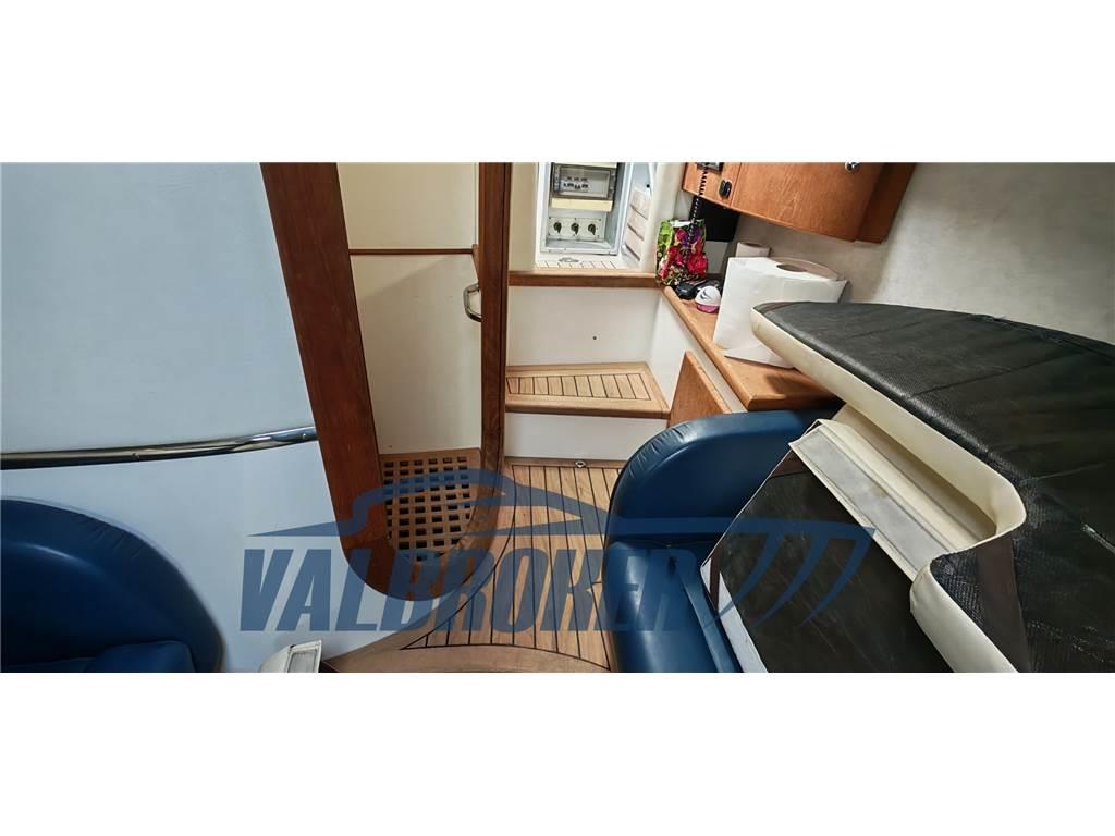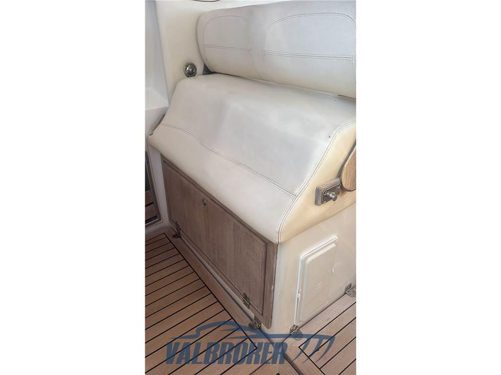 L’Albatro Marine 12e90 è un’imbarcazione open progettata per offrire prestazioni elevate e comfort a bordo. Equipaggiata con 2x Yanmar da 440 CV, capaci di raggiungere una velocità massima di 52 nodi e una velocità di crociera di 35 nodi. La disposizione degli interni include una cabina matrimoniale a prua separata, in pelle blu, un bagno e una dinette. Ideale per chi cerca un’imbarcazione sportiva con spazi confortevoli, l’Albatro Marine 12e90 è perfetta per escursioni veloci e crociere in totale relax. Trasmissione con eliche di superficie, Jolly drive. Apertura vano motore elettrica.