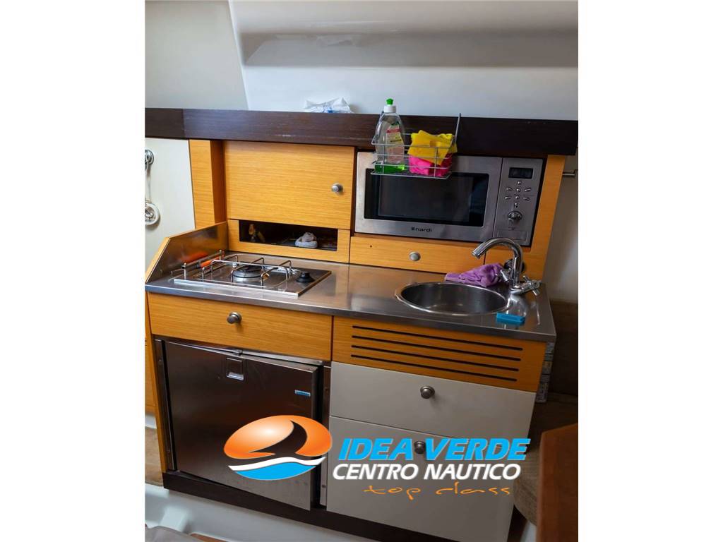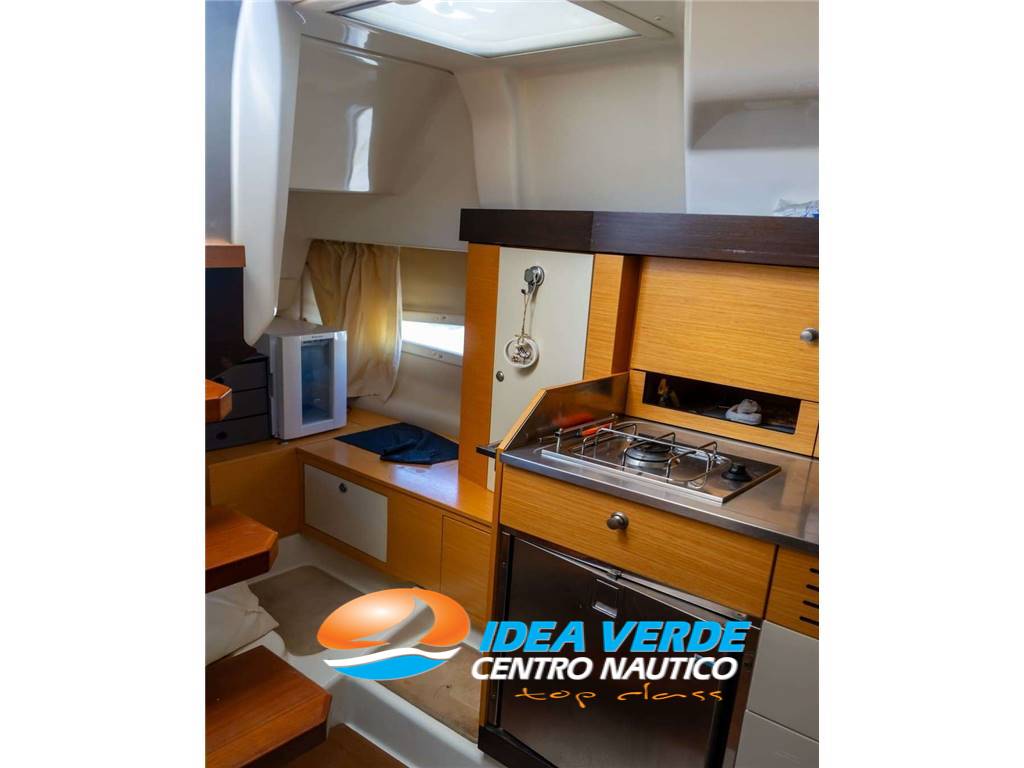 Gli interni del Cranchi Zaffiro 29 offrono un’eccellente combinazione di eleganza, funzionalità e comfort. La cabina principale è accogliente e rifinita con materiali di qualità, ideale per soste confortevoli durante le navigazioni o i weekend a bordo. Il WC marino elettrico, il frigorifero e il fornello a gas rendono la vita a bordo pratica e completa, mentre il tavolo in pozzetto permette di organizzare pasti e momenti conviviali in totale comodità. L’illuminazione e la disposizione degli spazi assicurano vivibilità e facilità di movimento in ogni zona dell’imbarcazione.