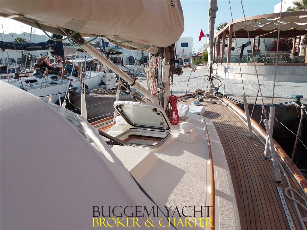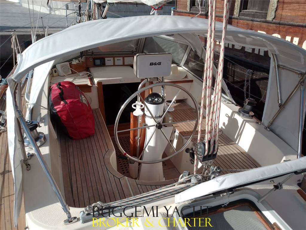 Barca completamente revisionata 2020-23: compreso nuovo motore Beta Marine Kubota 38 cv del 2021 con asse nuovo 2018, nuove vele Doyle Tessuto Contender Fibercon Hybride con Dyneema 2021 garantite 20 anni, cime e drizze 2021/24 dyneema. e lazy bag nuovo 2023, nuovo sartiame Hylas 2018, pilota automatico idraulico Simrad totalmente revisionato 2021 con sostituzione pompa idraulica e pistone, nuovo bimini e tendalini Sunbrella 2023 con chiusura totale del pozzetto, elettronica e radar B&G con chart plotter Zeus 9” nuova 2018, Interni revisionati con nuovi tessuti nelle cabine 2023, Riscaldamento Eberspacher diesel.