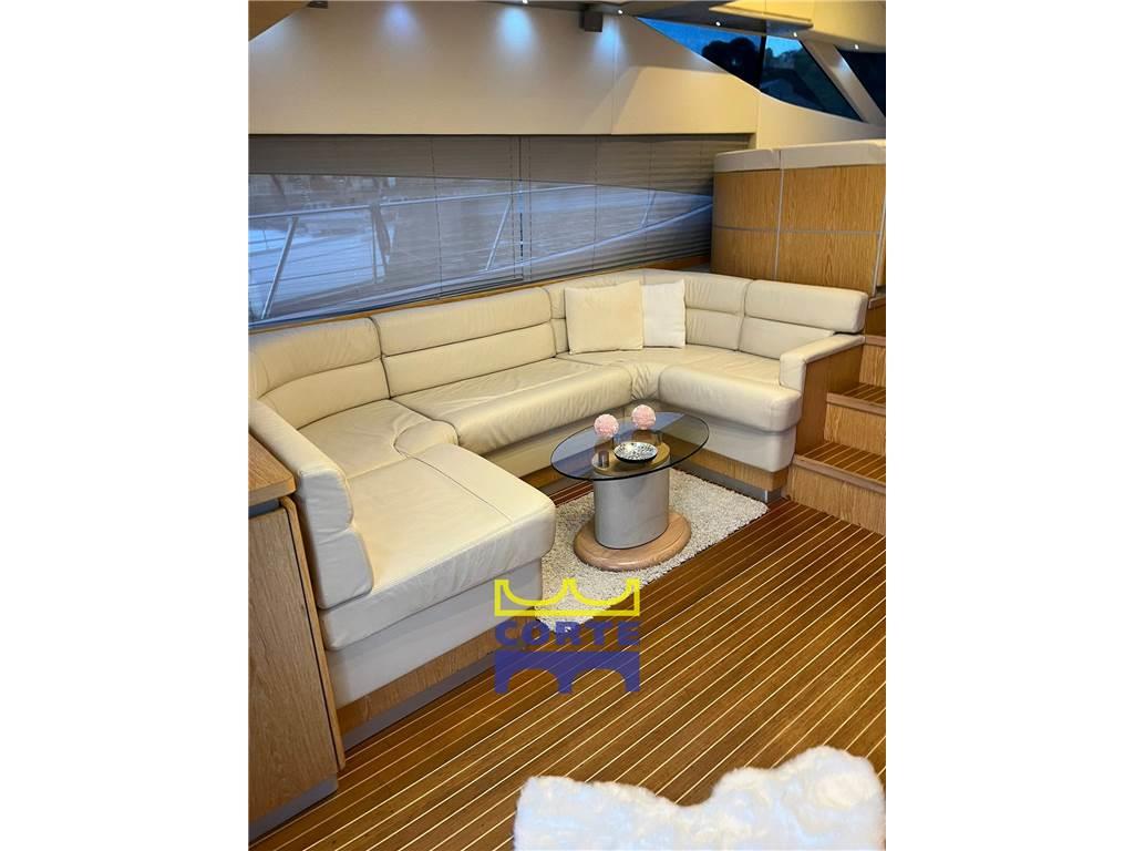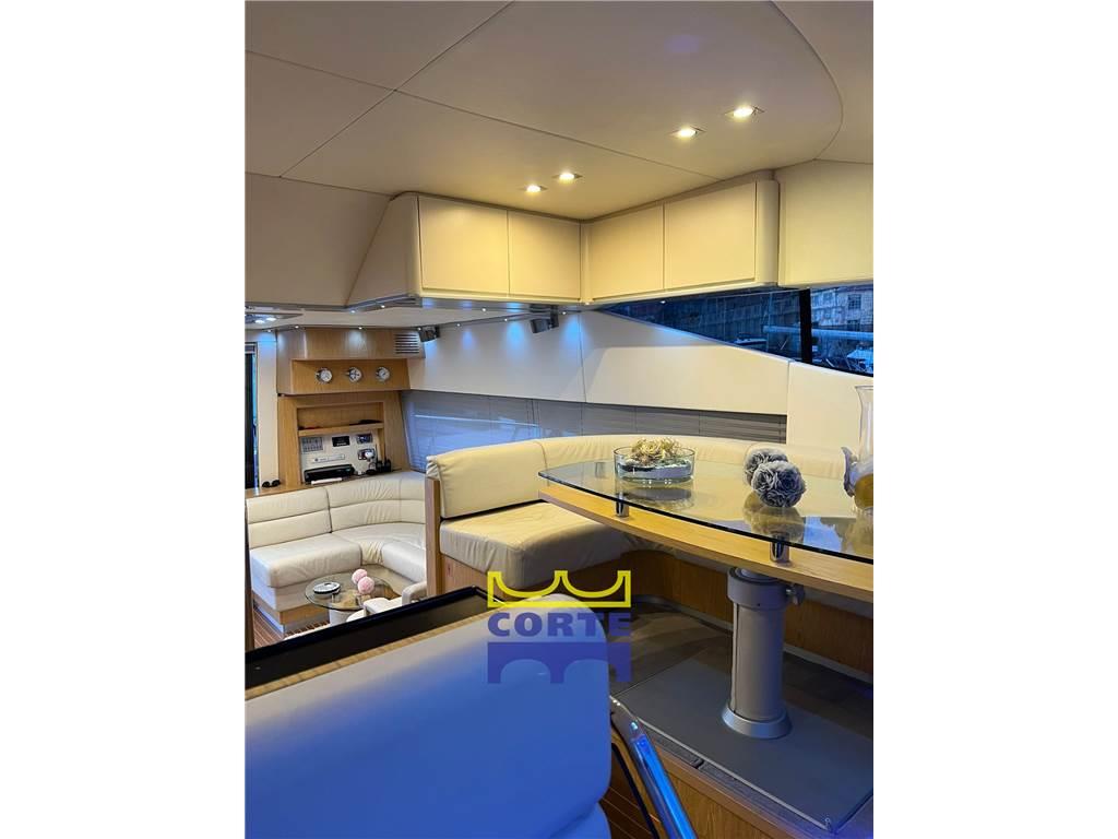 Antenna Satellitare TV, Bimini (top fly), Boiler (elettrico), Clima reversibile (Frigomar), Cucina, Cuscineria completa, Decoder satellite (SKY), Dissalatore (Idromar), Forno, Frigorifero esterno (sul fly), Frigorifero interno, Impianto TV, Inverter, Lavatrice, Meccanismo saliscendi per TV (salone), Microonde, Pavimento interno in legno, Piastra in vetroceramica, Prese interne 12v, Prese interne 220v, Stereo (Impianto Bose Dolby surround), Tendalino, TV (in salone, cabine e dinette marinai), WC marino elettrico