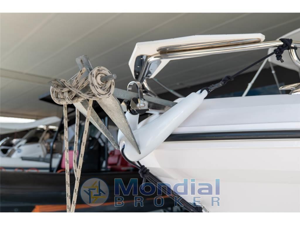 2 Oblò consolle - Aspiratore gas - Cuscini prendisole di prua - Indicatore livello carburante - Luci di navigazione - Mobile WC in rovere dark grey - Sedile guida con spalliera a ribalta - Pompa di sentina con comando automatico/manuale - Porta oggetti - Redan carena HIS - Scafo bianco - Scaletta di risalita - Serbatoio acqua - Serbatoio carburante in polietilene reticolato - Serie completa corrimano inox - Stacca batteria - Tappezzeria Esterna standard - Tasche portaoggetti - Timoneria meccanica completa - Tromba elettrica