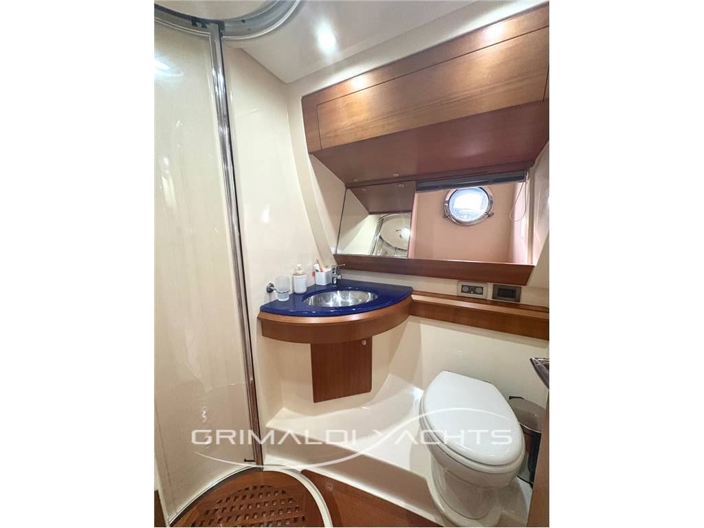 Sono presenti due bagni uno en-suite nella cabina armatoriale e l'altro ad uso ospiti con accesso anche alla seconda cabina matrimoniale, entrambe con lavabo, WC elettrico e box doccia.