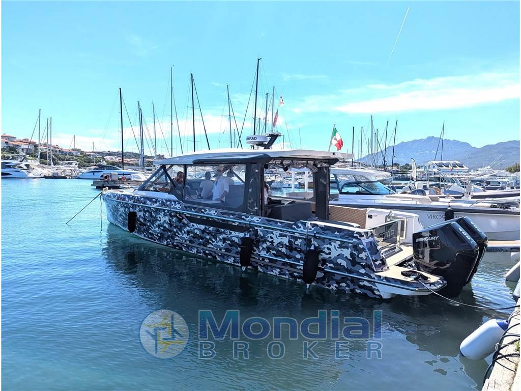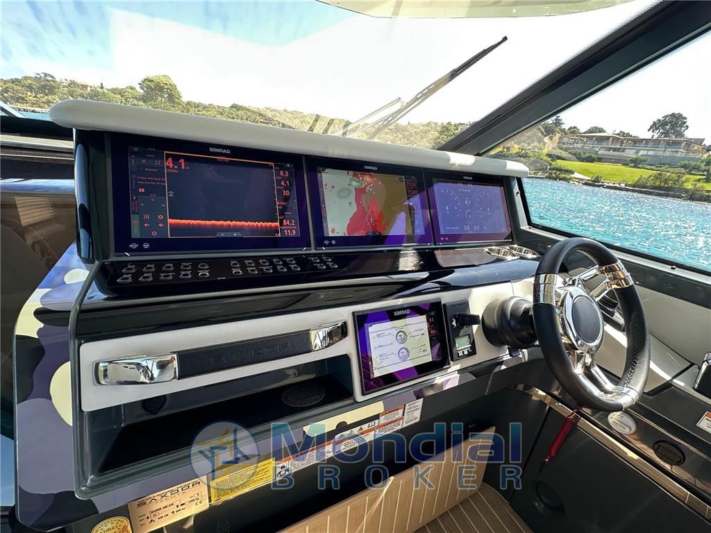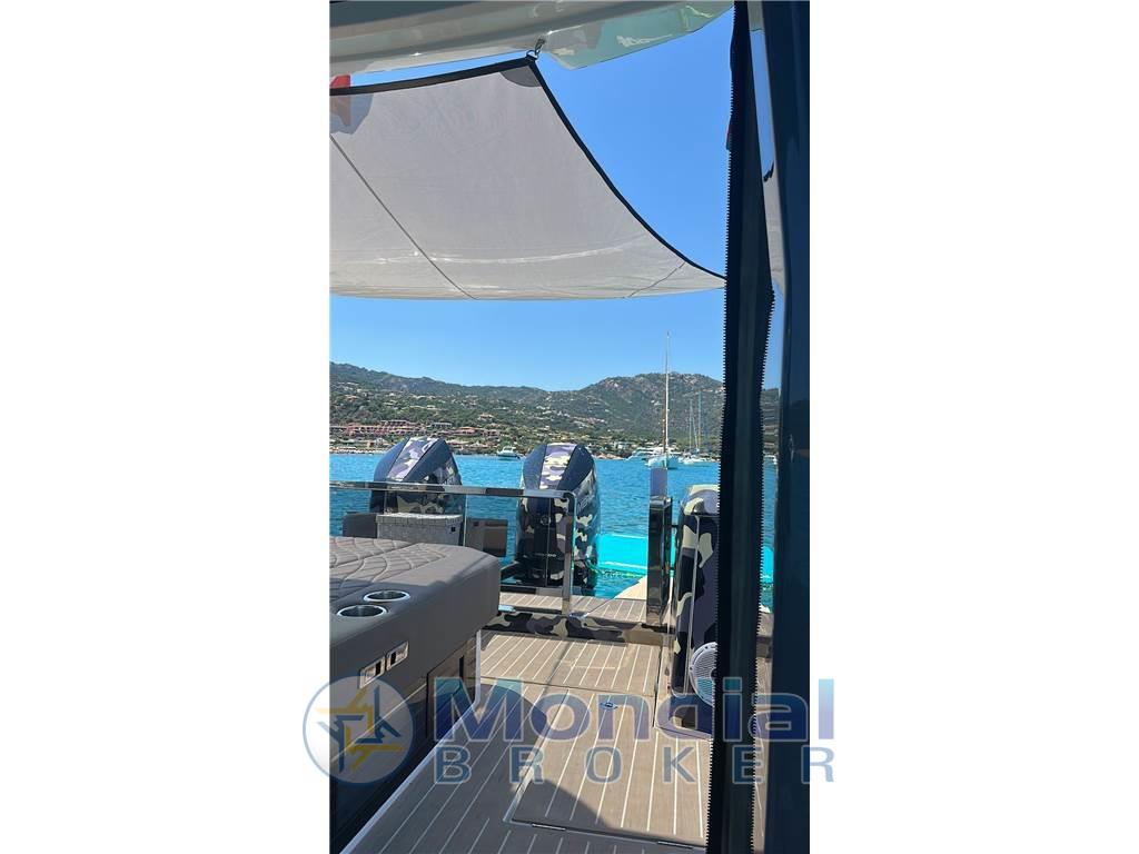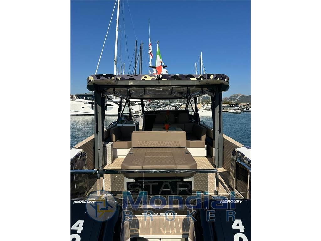 Questo Saxdor 400 GTO praticamente full specs, consegnato al suo primo ed unico armatore nell’estate 2025, incarna al meglio tutte le caratteristiche che hanno reso Saxdor un cantiere d’avanguardia. Le murate abbattibili, lunghe quasi quattro metri, ampliano in modo sorprendente la vivibilità della grande isola living di poppa, facilmente trasformabile in base alle esigenze. Comfort, praticità e stile sono le parole chiave di questa unità, equipaggiata il generator replacement, l'aria condizionata, BBQ esterno, piastra a induzione e doppio frigorifero esterno da 51 litri. I weekend in mare diventano un’esperienza senza compromessi, completata dai tendalini di poppa e di prua e dalla potenza dei due Mercury da 400 hp, capaci di spingere questa regina del mare fino a 45 nodi. Gelcoat in perfette condizioni, protetto dal wrap camouflage.