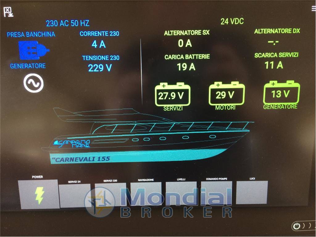 STRUMENTAZIONE NUOVA GENERAZIONE RAYMARINE CON DOPPIA STAZIONE 4 MONITOR RAIMARINE AXIOM 12" TUCH SCREEN IL SISTEMA è PROVISTO DI DOMOTICA CON LA QUALE SI POSSONO GESTIRE TUTTI I SEVIZI DI BORDO POMPA DI CALORE INVERNO ESTATE (NUOVA) RADIO VHF STAZIONE VENTO, ANTENNA SATELLITARE A INSEGUMENTO ANTENNA DIGITALE TERRESTRE TC LED IN SALONE E PICCOLA TV IN CABINA ARMATORIALE, INTATTENIMENT COMPLETO DI STEREO RADIO ECC.