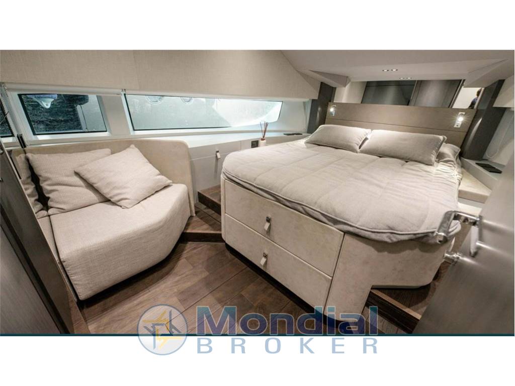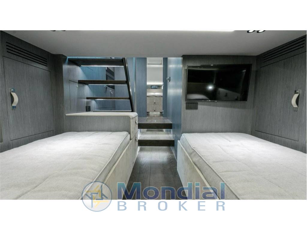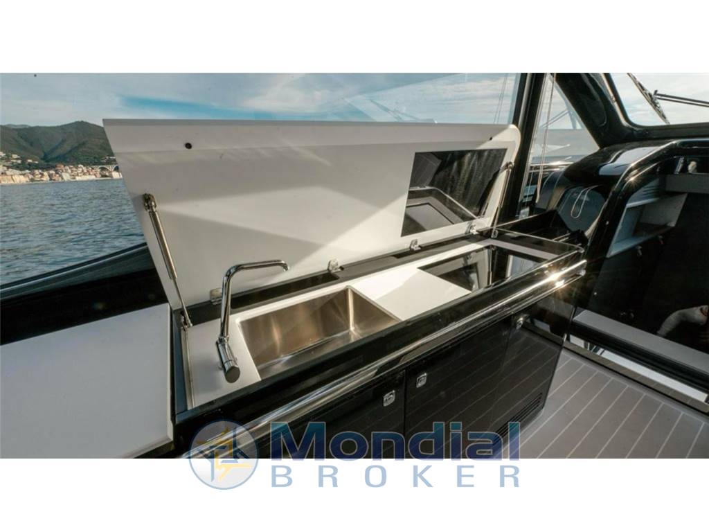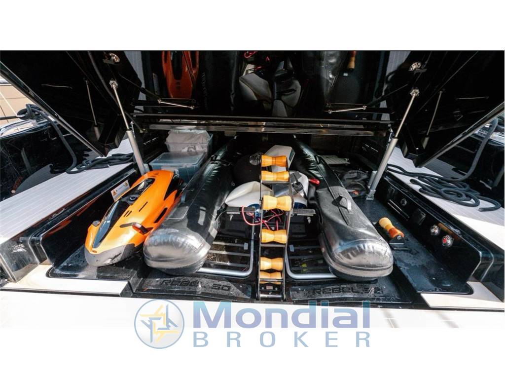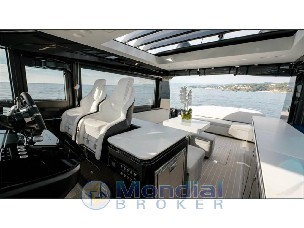 Dispone di una comodissima dinette apribile a 360 gradi grazie alla possibilità di abbassare le vetrate laterali elettricamente ed alla apertuta del top. A seguire troviamo due spaziosissime e comodissime cabine con un grande bagno con spazi separati.