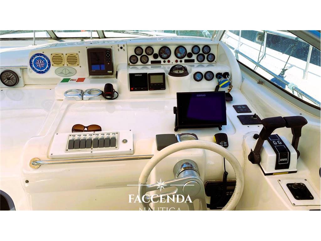 Ecoscandaglio, Plotter, VHF, Radio, Bussola, Altoparlanti di pozzetto, GPS, Centrale di navigazione, Contamiglia, Pilota automatico.