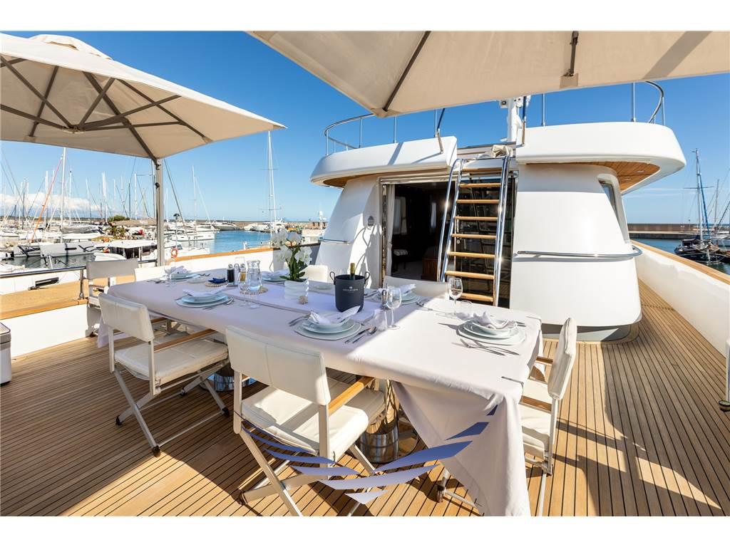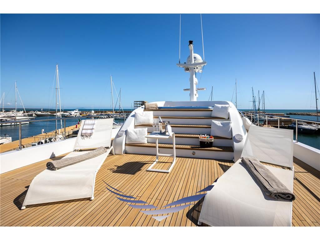 Il terzo ponte rappresenta l’area perfetta per il relax e il divertimento, con una vasca idromassaggio e ampi materassi prendisole che possono essere configurati secondo le esigenze degli ospiti, offrendo una gestione flessibile e personalizzata dello spazio a bordo.
