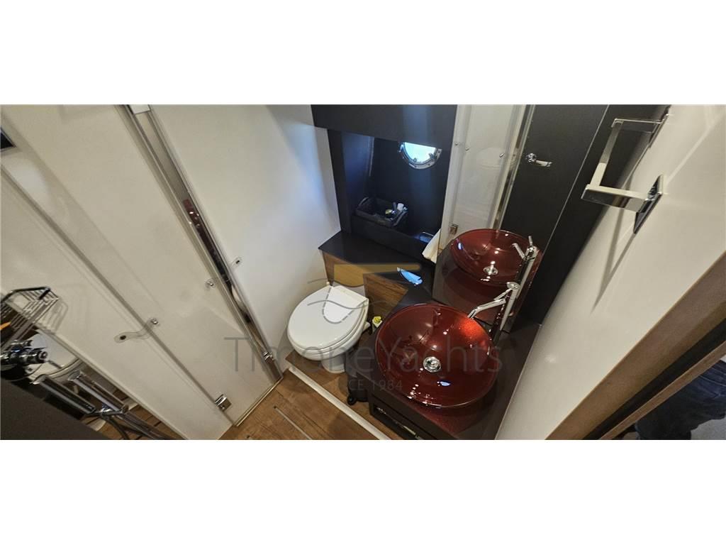 Ancora (acciaio inox), Auto-Trim, Camminamenti laterali in teak, Colorazione speciale, Comando motori elettronico, Contametri catena, Elica di prua - bow thruster, Faro orientabile, Garage per tender, 2 GPS (Raymarine 12 hybridtouch), Hard top (con soft top apribile elettrico), Joystick (di manovra), Lavandino nel Pozzetto, Luci di cortesia, Passerella (idraulica 3 sfili idraulica), Piattaforma (affondabile), Pilota automatico, Pozzetto Teak, Radar, Tavolo pozzetto, Tavolo Salone Abbattibile