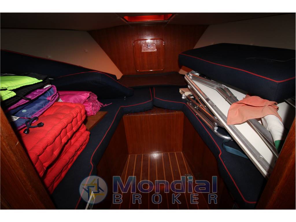 1 Cabina letto a V e 1 bagno con wc, lavandino. Luminosa dinette. Interni in legno e pavimento in teak. Ottime condizioni ed accurate