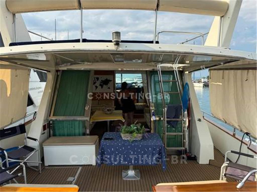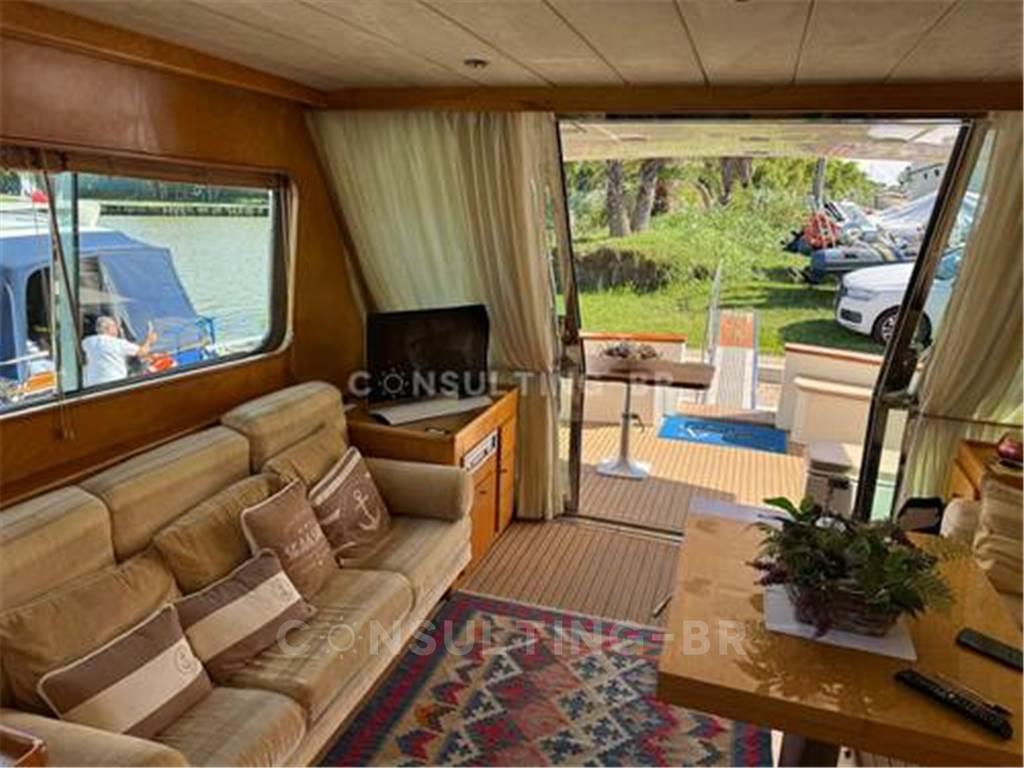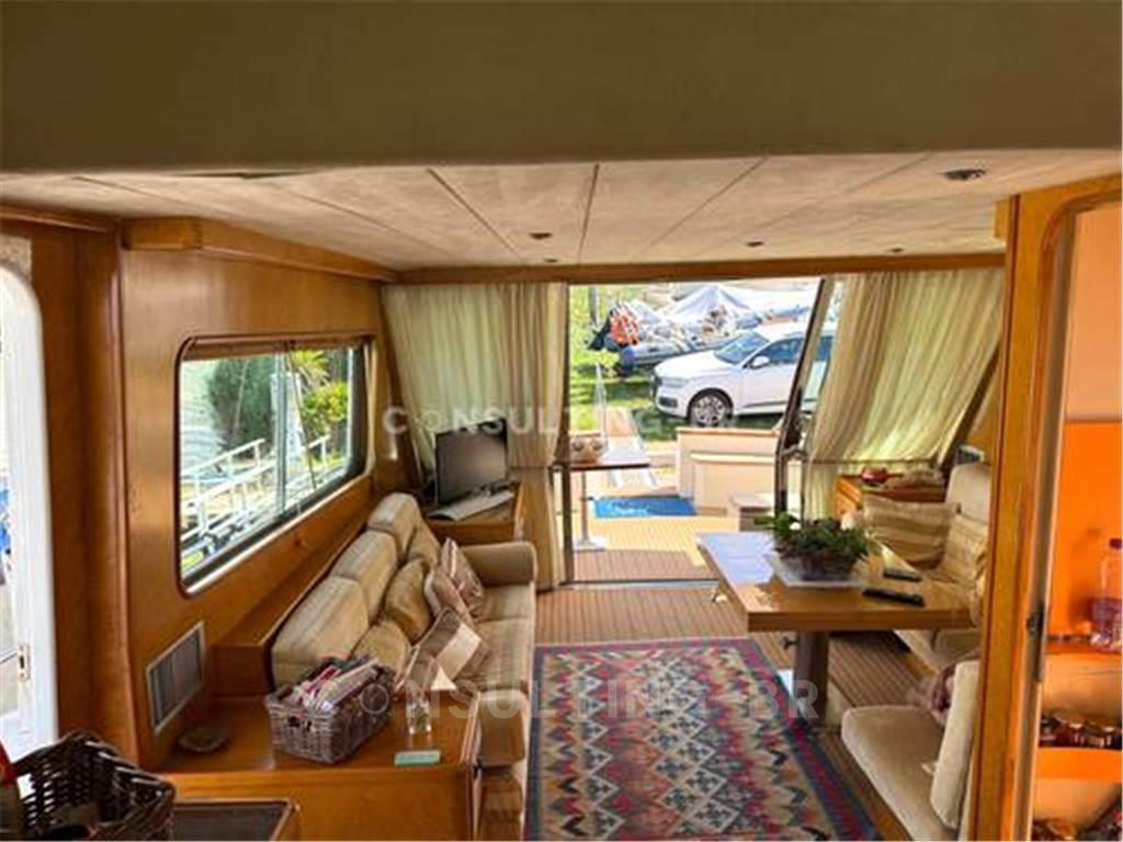 Coperta e tecnologia: propulsore di prua – verricello elettrico – passerella – teak sui ponti di coperta e sul pozzetto – piattaforma da bagno ampliata – doccia nel pozzetto – tavolo nel pozzetto – ancora – pompe di sentina automatiche ed elettriche – allacciamento alla rete elettrica – illuminazione notturna – ringhiera – flap (idraulici) – Porta laterale – Sirena – Supporti per tender Interni e comfort: Aria condizionata (Condaria) – Riscaldamento – Acqua calda – 3 WC elettrici – Pavimento interno in teakOttica – Prese 12 V / 220 V Sicurezza: zattera di salvataggio – giubbotti di salvataggio – salvagente con boa di segnalazione – kit di pronto soccorsoAssistenzaScatola – Attrezzatura per offshore (> 50 miglia nautiche) Intrattenimento: 5 × LCDTV – Impianto stereo – Radio AM/FM – Altoparlanti interni ed esterni Cucina e servizi domestici: Frigorifero – Piani cottura in vetroceramicaPiano cottura – Forno – Lavello – Porta laterale sul lato del salone Imbottitura: Nuova imbottitura esterna – PruaCuscini prendisole – Imbottiture interne in buone condizioni Yacht a motore in ottime condizioni, sempre curato con la massima attenzione. Una barca ideale per i proprietari che apprezzano la qualità italiana, il comfort degli spazi e la navigabilità. Contattatemi per ulteriori informazioni o per una visita in loco.