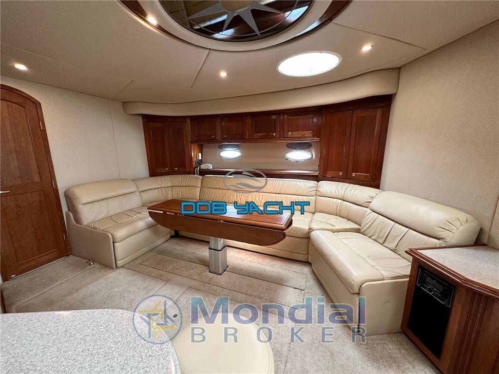 2 cabine, 2 bagni: cabina armatoriale a poppa con WC separato , cabina doccia e cabina armadio, cabina OSPITI a prua con letto matrimoniale, 2 * WC con cabina doccia, cucina a SX con frigo FINLUX, doppio lavandino , piano cottura in vetroceramica SAMSUNG e microonde ; dinette con divano e tavolo con movimento elettrico convertibile in posti letto, ampio pozzetto di poppa con divani corredati di tappezzerie e tavolo, plancia comando con seduta pilota e co pilota con sedute regolabili, prendisole di prua.