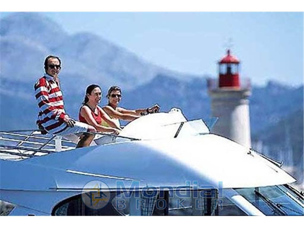 La piattaforma di poppa consenti agevoli bagni di mare e supporta adegutamente il tender, l'apertura di poppa consente un facile ingresso al pozzetto, che risulta ben dimensionato. I passaggi a prua sono comodi e sicuri e il prendisole di prua è largo e ben disposto. Al fly si accede dal pozzetto da una scala stampata in vetroresina normalmente presente solo in imbarcazioni di taglia maggiore. Sul fly, la stazione di comando è al centro . Un gradevole zona tavolo e un prendisole ampio lo impreziosiscono.