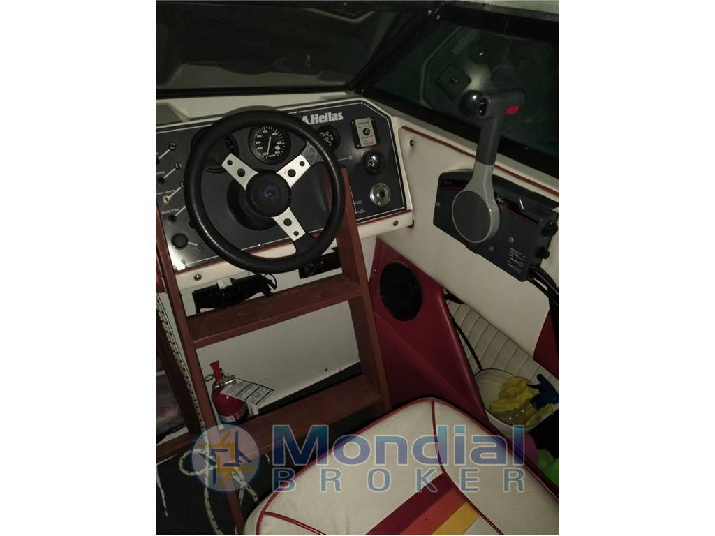 Hellas Hermes semicabinata usata dalle linee versatili, ideale per uscite giornaliere e piccoli weekend. Lo scafo offre una cabina con 2 posti letto, seduta di poppa con cuscini prendisole e postazione di guida con poltrona pilota e copilota per una navigazione comoda e sicura. Motorizzata con Yamaha F40 DETL 40 CV 4 tempi (anno 2010, messa in acqua 2011). Barca utilizzata prevalentemente in acqua dolce e rimessata al chiuso.
