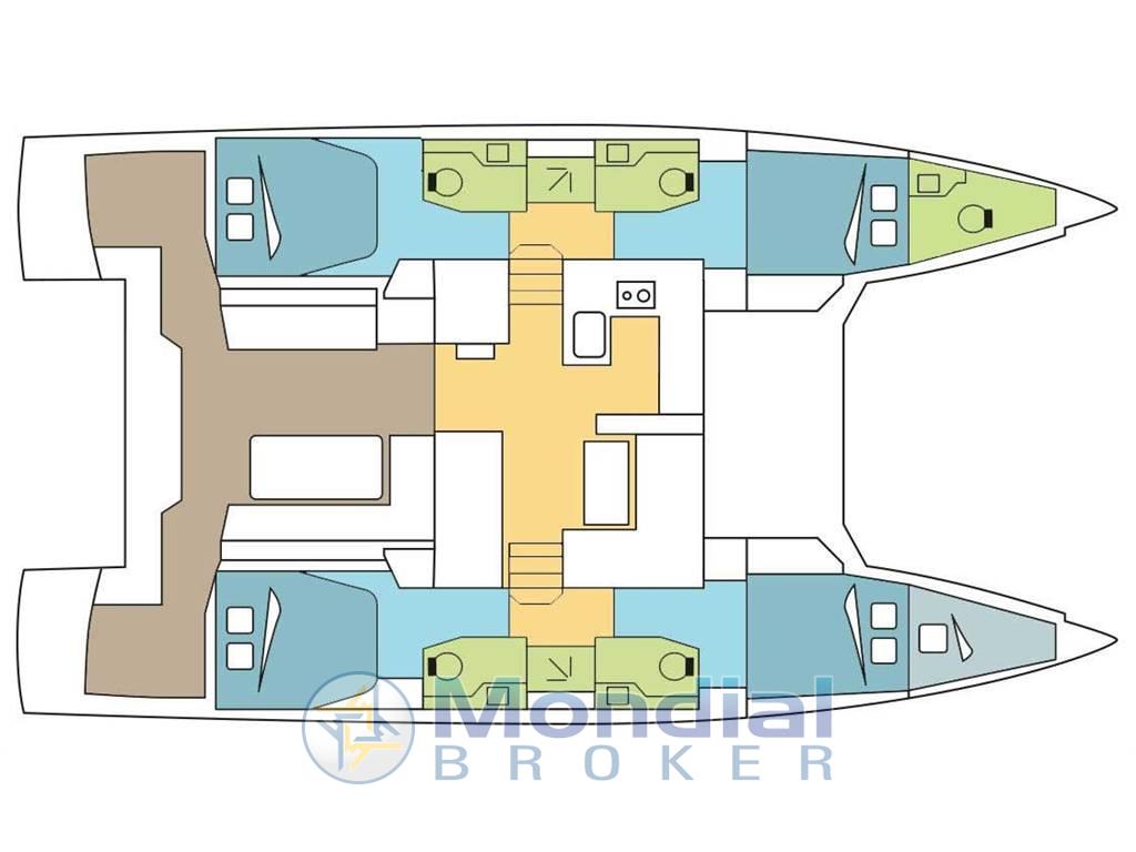 4 Matrimoniale francese, 2 Cabina equipaggio, 4 Toilette.