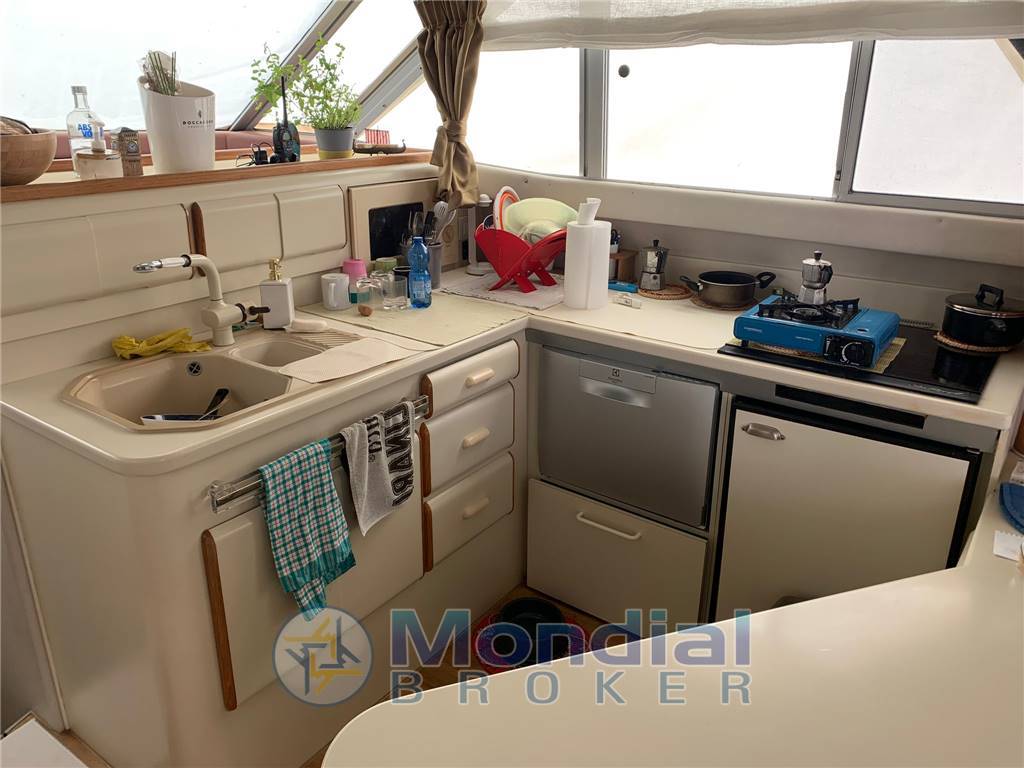 generatore ONAN 16 kw,aria condizionata 3 compressori, ice-maker sul fly,TV LCD cabina + dinette,pedana di poppa affondante,piano cottura in vetroceramica,Boiler 65 lt Isoterm nuovo 2025,2 caricabatterie: uno 24 + 12 nuovi Victron,telo copertura totale 3 pezzi,telo completo flybridge,copri-finestrature,cuscinerie,pompe avque grigie nuove,passerella idraulica,frigo/freezer,forno,ghiacciaia,Bimini top.