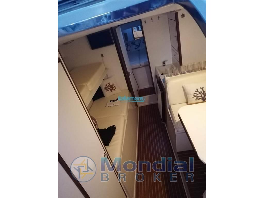 Cucina, Cuscineria completa, Cuscineria di poppa, Cuscineria di prua, Cuscineria Pozzetto, Dotazioni di sicurezza entro 6 miglia, Fornello, Frigorifero interno, Impianto acque nere, Impianto TV, Prese interne 12v, Prese interne 220v, Stereo, Telo copriconsolle, Tendalino, TV, WC marino elettrico
