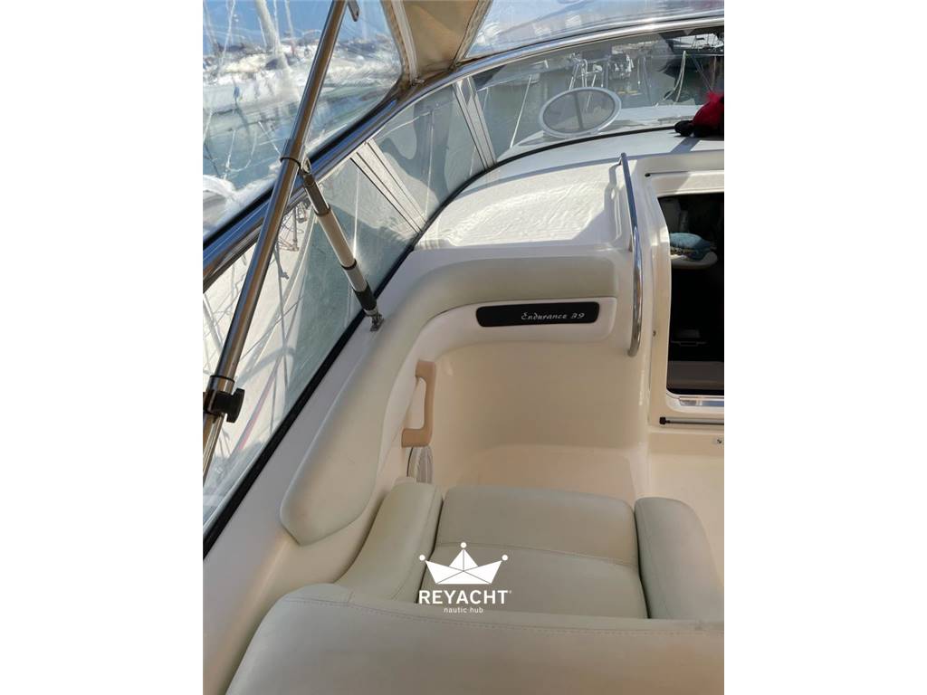 The Endurance 39 features a fiberglass hull with a beam of 3.50 meters and a draft of only