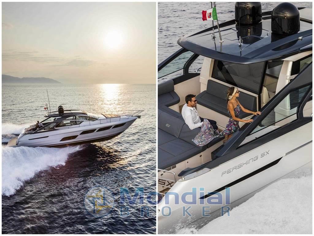 La prima delle creazioni della “Generazione X”. Un coupé audace il cui marchio - un codice usato nel mondo aeronautico per indicare prestazioni estreme ed evoluzione tecnologica - allude alla sete inestinguibile di salpare a grande velocità verso nuovi orizzonti. Pershing 5X è la prima pagina di un nuovo favoloso capitolo nella storia di Pershing. Il design aerodinamico riprende il classico stile Pershing, come le ali laterali a protezione del pozzetto, che possono essere separate o unite al salone interno con l'innovativo sistema di apertura e chiusura di porte e finestre in vetro. Il progetto si completa con quattro finestre dello scafo per murata, ciascuna con oblò ellittici, rendendo così il Pershing 5X un vero "jet da combattimento" sull'acqua.