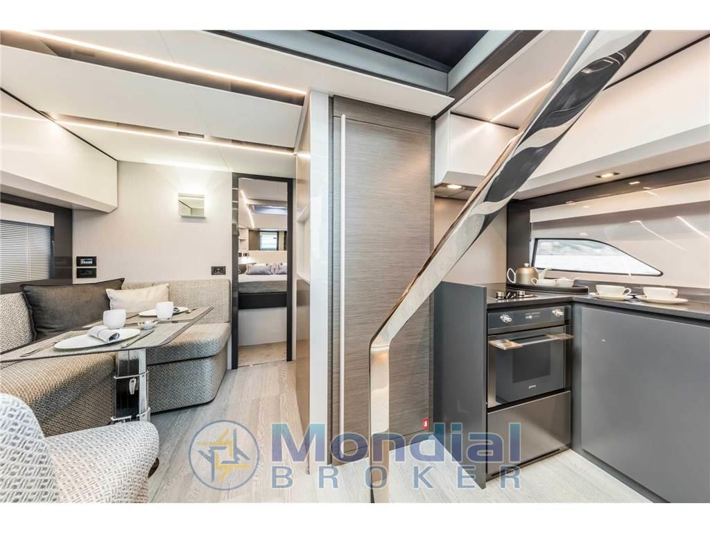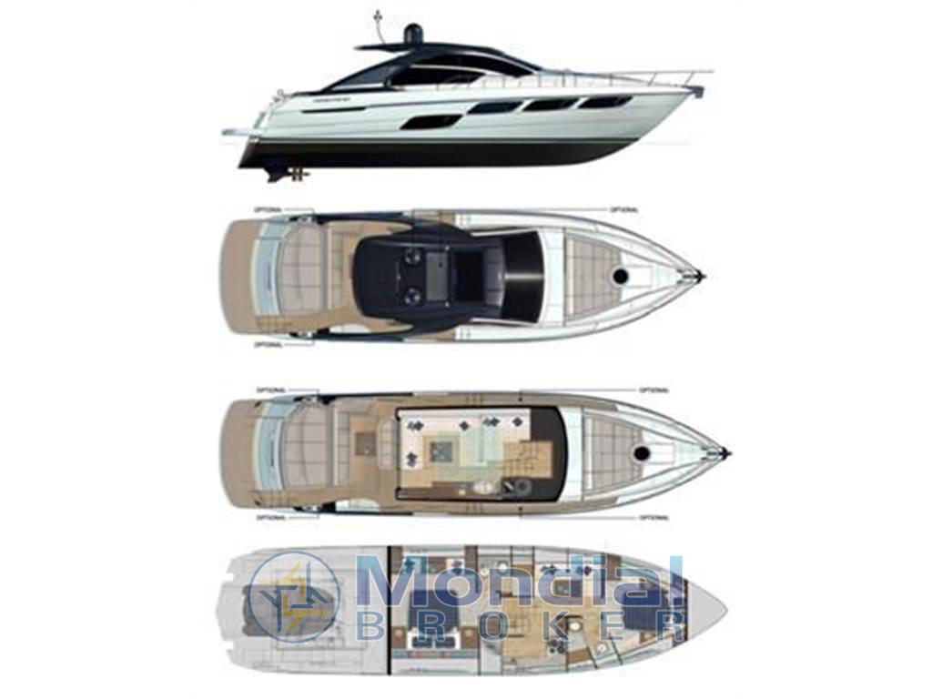 Allarme motore, Allarme sentina, Auto Dynamic Trim Interceptor, Camminamenti laterali in teak, Doccia esterna, Elica di prua - bow thruster, Hard top, Impianto antincendio, Lavandino nel Pozzetto, Luci di cortesia, Luci subacquee, Passerella (Electrohydraulic letter box type), Piattaforma (Electrohydraulic), Pozzetto Teak, Presa acqua banchina, Stabilizzatori (Seakeeper 5), Winch tonneggio di poppa.