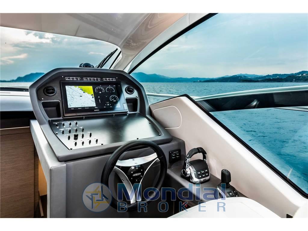 Angolo barra, Bussola, Comando motori elettronico, Computer di bordo, Contametri catena, DSC vhf, Ecoscandaglio, Joystick, Pilota automatico, Plotter con antenna GPS, Radio VHF, Sistema di posizionamento dinamico.