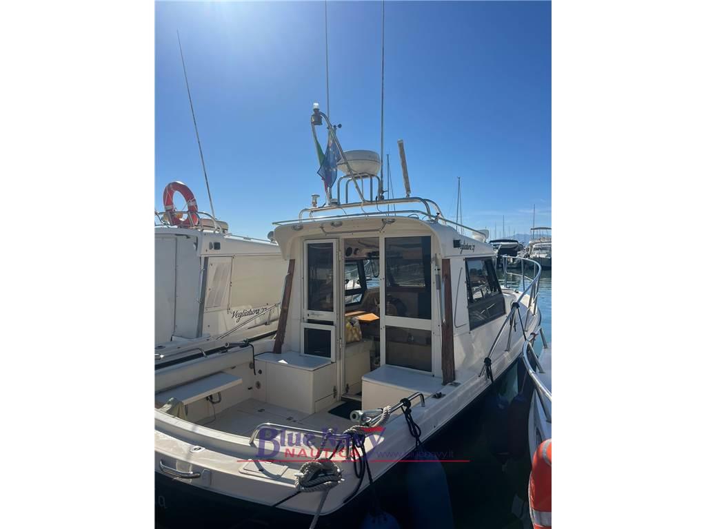 Proponiamo in vendita la barca usata VEGLIATURA 27 del 2001 motorizzata con due VOLVO PENTA Modello TAM D31 PA, 2x 150cv GASOLIO del 2003 ore navigazione 1330; posti letto 2+2 GRUPPO CUCINA A GAS CON LAVELLO + GRUPPO FRIGO LATO DX / UN LOCALE BAGNO + WC MARINO / DINETTE CON TAVOLO ABBASSABILE LATO SX (doppio letto); 3 batteria, staccabatteria, VERRICELLO ELET. LOFRANS / ANCORA DANFORTH / CATENA ∅ 8 mm/ ANCORA RISPETTO; Bussola, GPS Plotter Raymarine Hybridtouche95; radar, 2x VHF, nel pozzetto lato sx ci sono doppi comandi motori previsti per le operazioni di pesca/manovra; manutenzione ordinaria /carena regolare; NUOVI fatti nel 2025 : turbine , motorini d'avviamento, scarichi, reiser,; revisione scambiatori, depeeling completo della carena e antivegetativa appena fatta (settembre 2025)