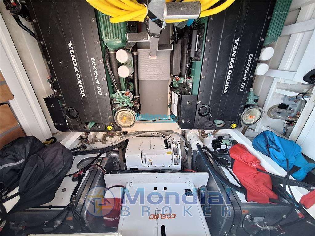 Allarme motore, Allarme sentina, Ancora, Angolo barra, Autoclave, Auto-Trim, 6 Batterie, Bussola, 2 Caricabatterie, Comando motori elettronico, Computer di bordo, Contametri catena, Contamiglia, Display, Doccia esterna, DSC vhf, Ecoscandaglio, Elica di prua - bow thruster, Faro orientabile, Flap elettrici, GPS, Hard top, Impianto antincendio, Indicatori Flaps, Joystick, Luci di cortesia, Luci subacquee, Pannelli Solari, Passerella, Piattaforma (idraulica), Pilota automatico, 2 Plotter con antenna GPS, Pompa di sentina automatica, Pompa di sentina elettrica, Porta laterale, Pozzetto Teak, Presa 220V banchina, Presa acqua banchina, Radio VHF, Salpa Ancore Elettrico, Scaletta da bagno, Tavolo pozzetto, Tender, Winch tonneggio di poppa, Winch tonneggio di prua, Yacht controller