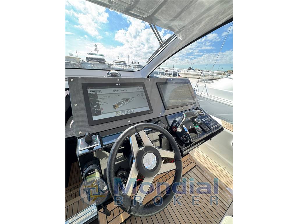 Dietro la plancia di comando, sotto la copertura dell’hard top, è collocata la zona bar / cucina: con lavandino, piani induzione, frigoriferi multipli, ice-maker, etc.