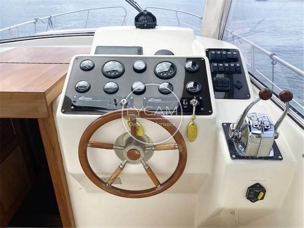 Bussola; Strumentazione motori (giri motori, angolo di barra, conta ore, temperatura acqua, pressione olio, indicatore carburante); Manette motori; VHF; GPS Garmin; Radio/Stereo; Flaps
