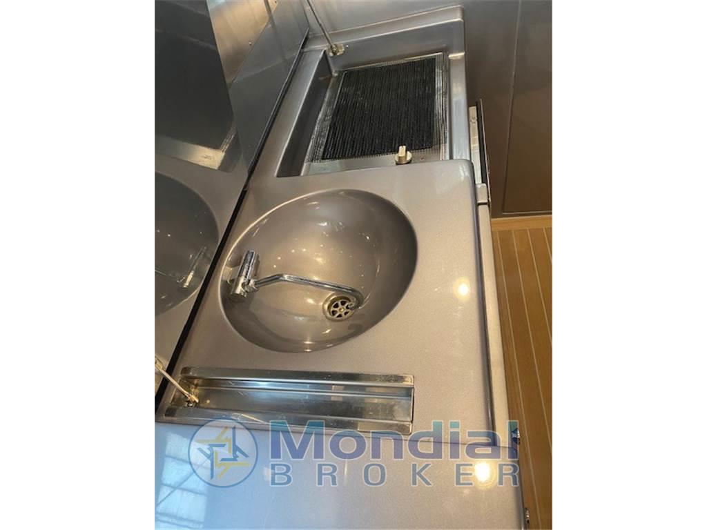 Elica di prua elettrica - elica di poppa elettrica - aria condizionata Dometic - frigo / freezer - piano cottura elettrico 4 fuochi - forno microonde - mobile bar in pozzetto con lavello, grill e frigo a cassetti inox - gruppo elettrogeno Onan 12 kW - antenna TV - antenna TV SAT - TV LCD - stereo Fusion - luci subacquee.